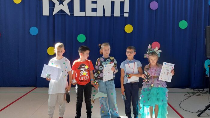 W tym dniu nasza szkoła zamieniła się w przestrzeń pełną pomysłów i pozytywnej energii, bo w klasach I-III na sali gimnastycznej wystąpiły wspaniałe talenty: taniec, recytacja, kostka Rubika, balet, śpiew, skecz, jazda na rolkach… Oj wymieniać można dużo. Wszyscy bawiliśmy się cudnie, gdyż nawet publiczność nieodkrytych lub nieśmiałych talentów tańczyła wspólnie na sali. Nie koniec jednak wszystkiego; prace plastyczne klas I-VIII są również sprawdzane ponieważ nasza społeczność szkolna ma również talenty nie tylko sceniczne. Pamiętajmy co w Nas jest wyjątkowe. Nasza twórczość przybiera różne formy.