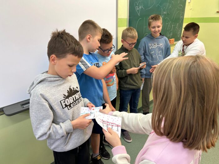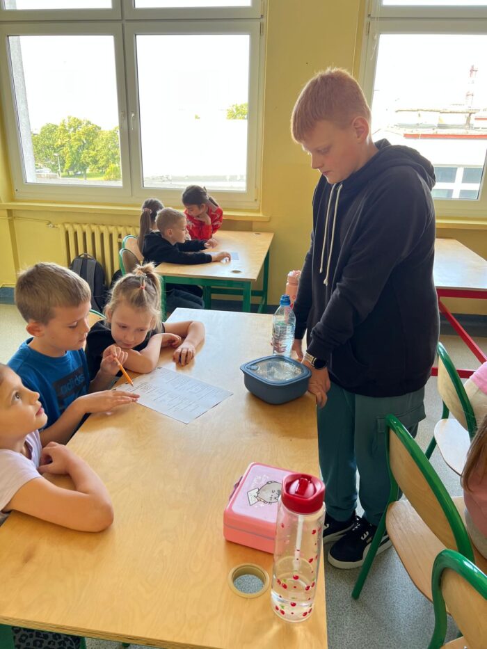 26 września klasa V a wzięła udział w wycieczce na Leśną Górkę w Kluczborku. Uczniowie uczestniczyli w emocjonujących grach terenowych, podczas których korzystali z map, kompasów, GPS-ów i krótkofalówek, aby rozwiązać przydzielone im zadania. Współpraca, zaangażowanie i dobra zabawa sprawiły, że wszyscy świetnie poradzili sobie z wyzwaniami. Po aktywnościach na świeżym powietrzu dzieci czekał zasłużony odpoczynek przy grillu, ciepłej herbacie i słodkim poczęstunku. Szczególną radością było spotkanie z naszą koleżanką Laurą, która przeniosła się do innej szkoły.
