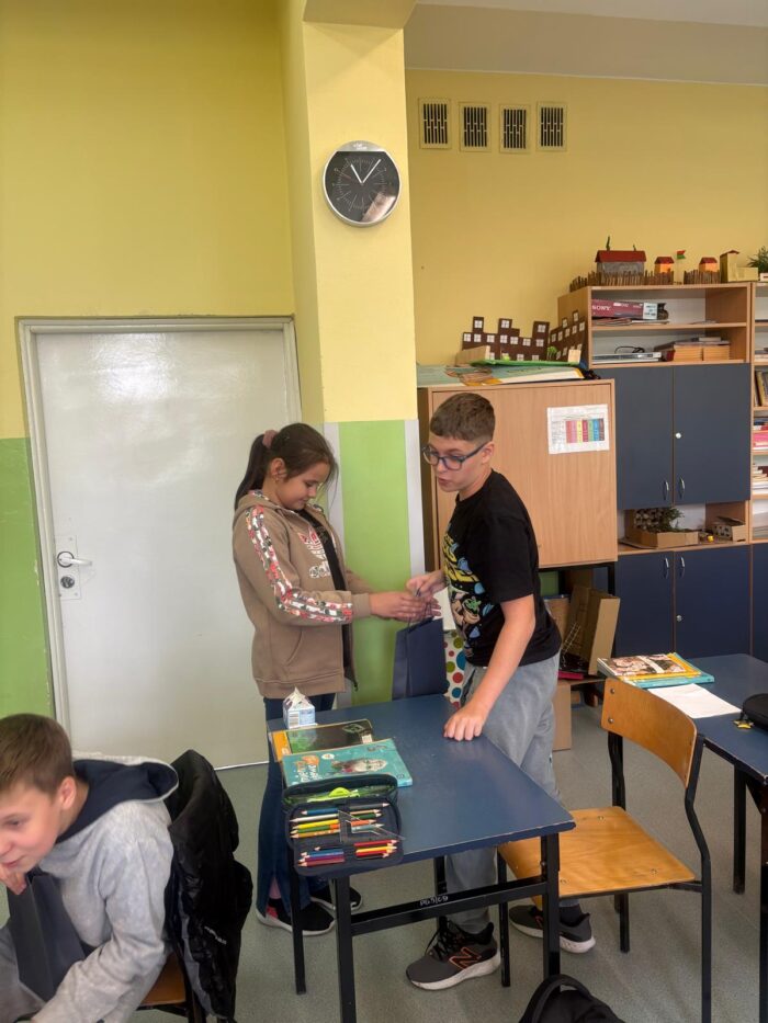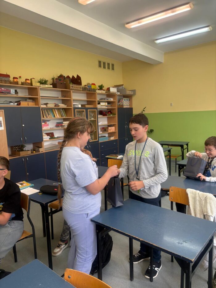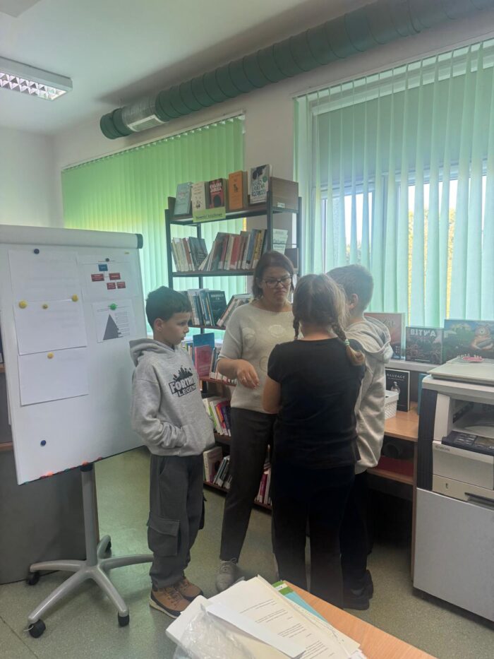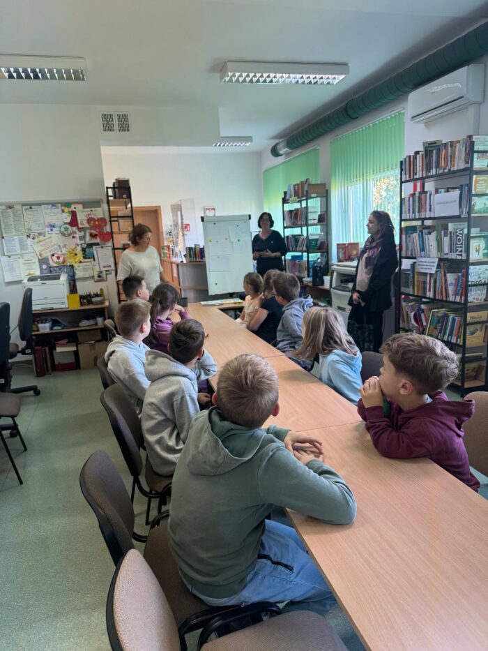 3 października 2025 r. uczniowie klasy IV A wraz z paniami: Renatą Aleksiejczuk i Małgorzatą Kwiatkowską wzięli udział w warsztatach czytelniczych z elementami biblioterapii z cyklu „Z dziećmi o wartościach”.