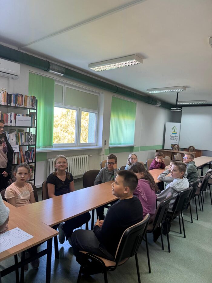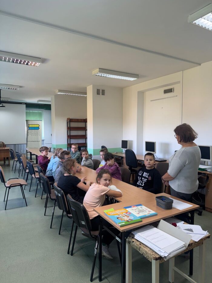 Dnia 22 września 2025r. uczniowie klasy 5D uczestniczyli w zajęciach, które odbyły się w Miejskiej i Gminnej Bibliotece Publicznej w Kluczborku.