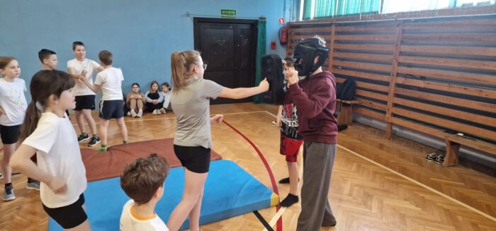 Młodsi uczniowie mieli niepowtarzalną okazję poznać różnorodne dyscypliny sztuk walki, takie jak karate, taekwondo, BJJ, MMA oraz K1. Każda z nich wzbudzała ogromne zainteresowanie – od pierwszych, nieśmiałych prób po coraz pewniejsze ruchy i szerokie uśmiechy na twarzach uczestników. Dla wielu był to pierwszy kontakt z tą formą aktywności, który pokazał, że sport to nie tylko wysiłek fizyczny, ale również dyscyplina, koncentracja i budowanie pewności siebie.