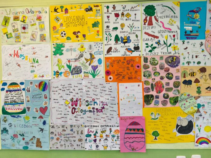 Klasa 4a i 5 c na lekcjach języka polskiego wykonała przepiękne prace ortograficzne o tematyce wiosennej i świątecznej.