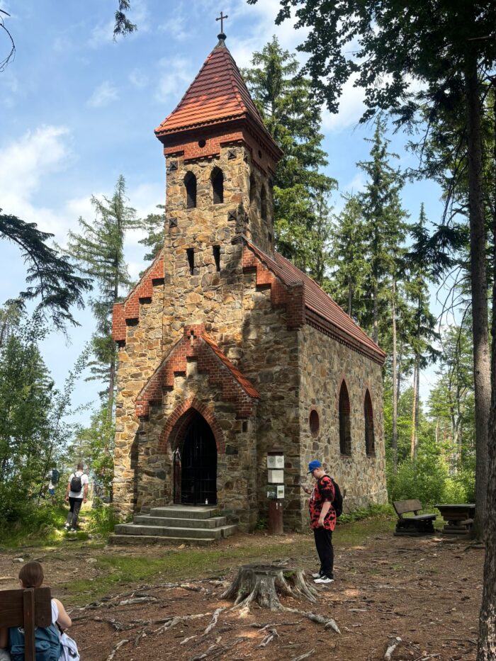 Drugiego dnia, po nieprzespanej nocy, udaliśmy się na pieszą wycieczkę na Górę Chrobrego. Naszym celem był szczyt-schronisko i kapliczka św.Anny. Po drodze poznawaliśmy roślinność i faunę regionu oraz uczyliśmy się zasad bezpiecznego poruszania się po górach.