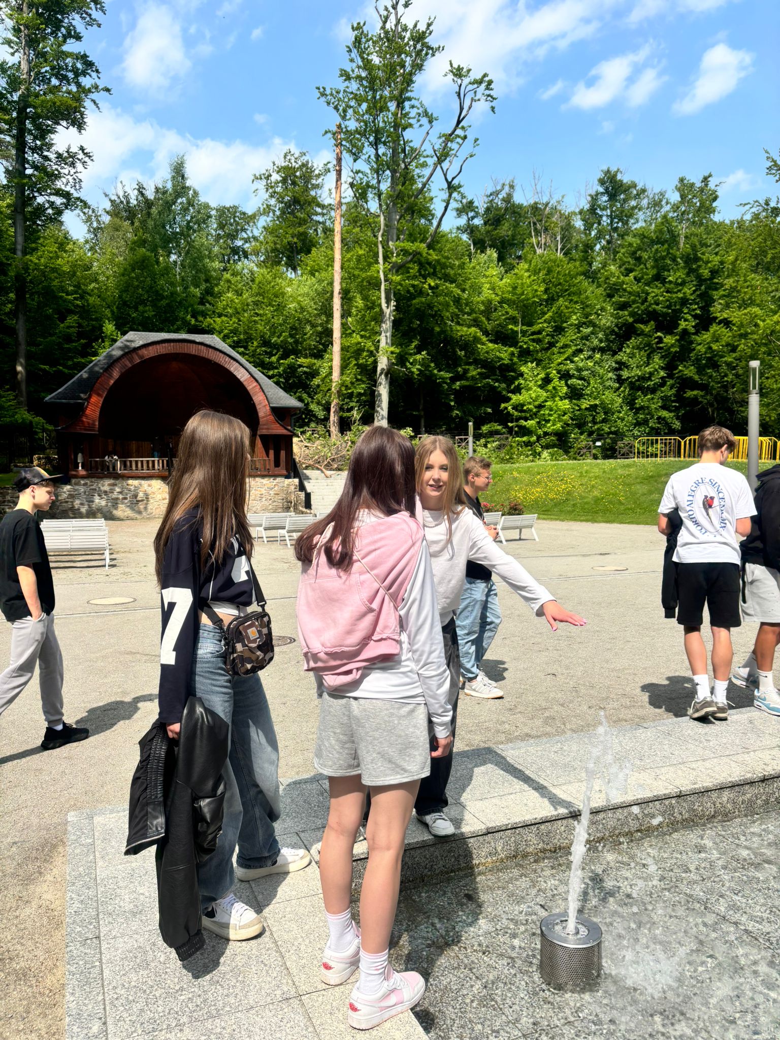 Po drodze odwiedziliśmy Park Zdrojowy oraz poznaliśmy historię uzdrowiskowej części Głuchołaz. Uczniowie byli szczególnie zainteresowani tzw. Zdrojem Wojciech, fontanną z wodą mineralną oraz piękną tężnią i wieżą widokową, z której roztacza się widok na okoliczne góry.