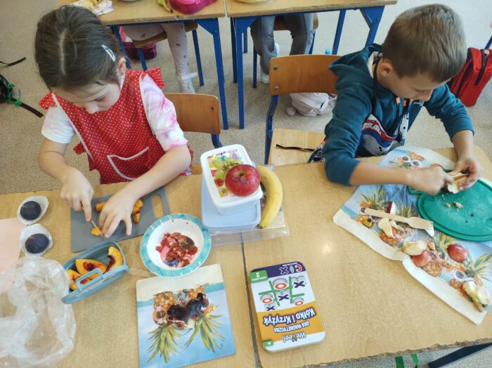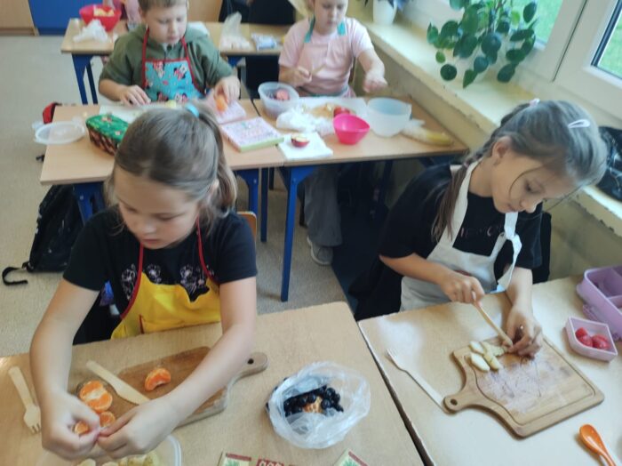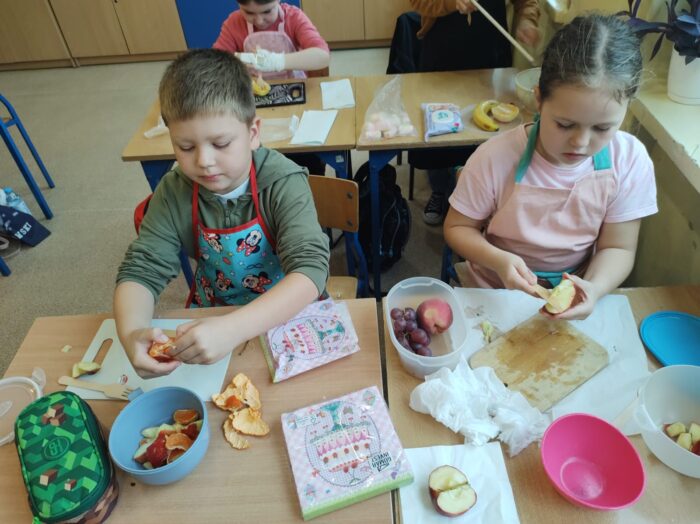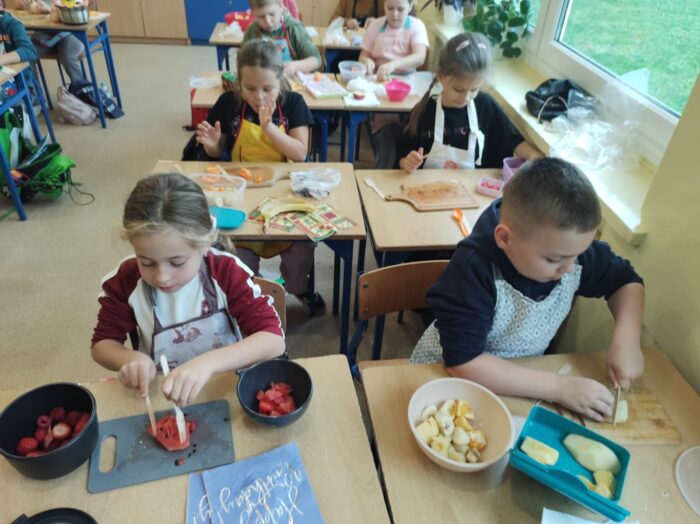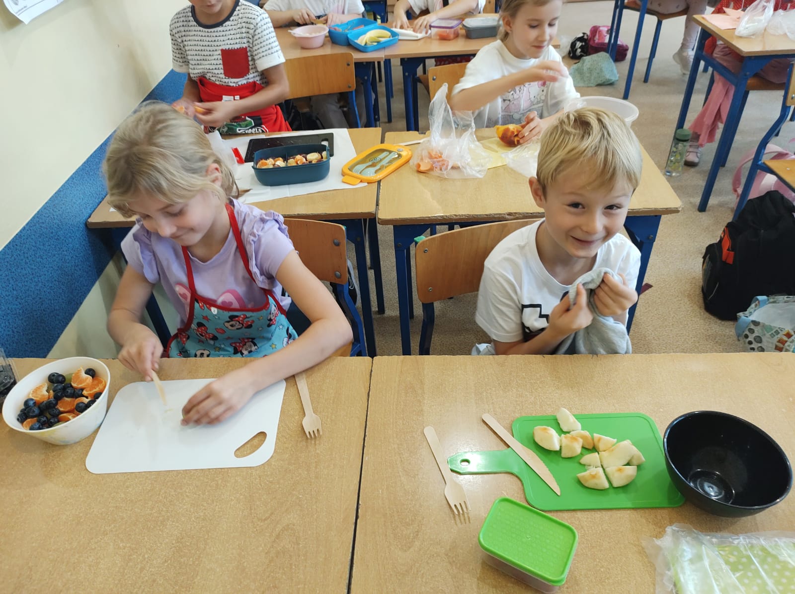 Zdrowo i kolorowo czyli sałatki owocowe w wykonaniu uczniów klasy IIB!