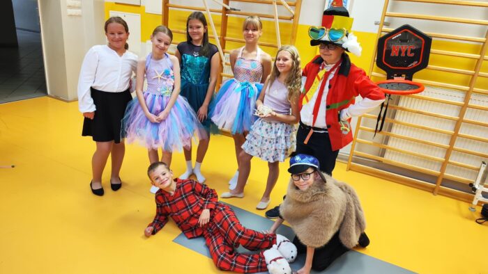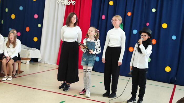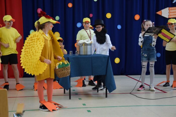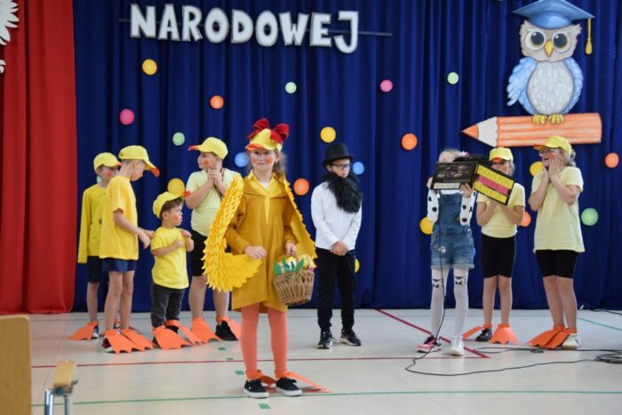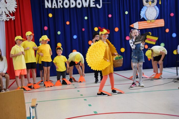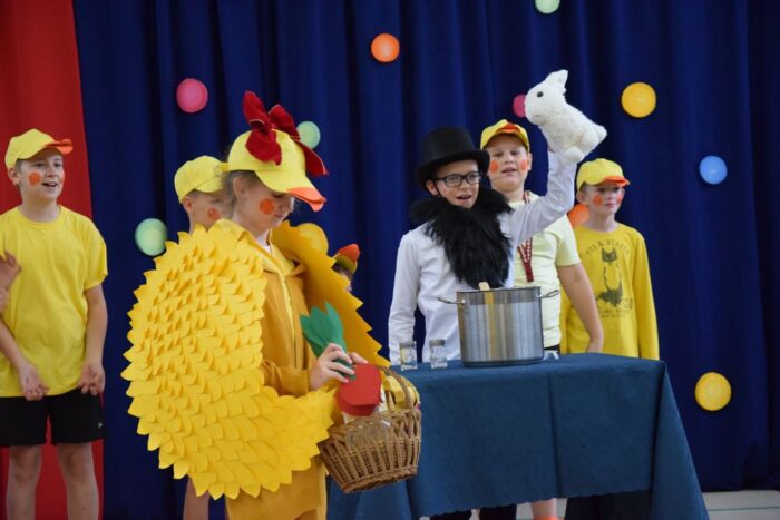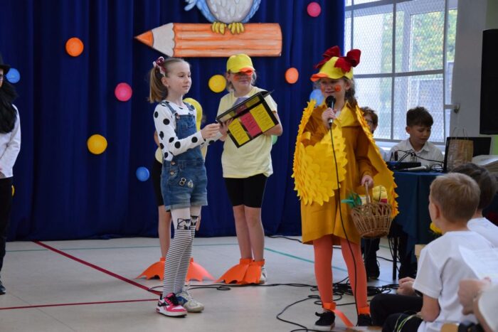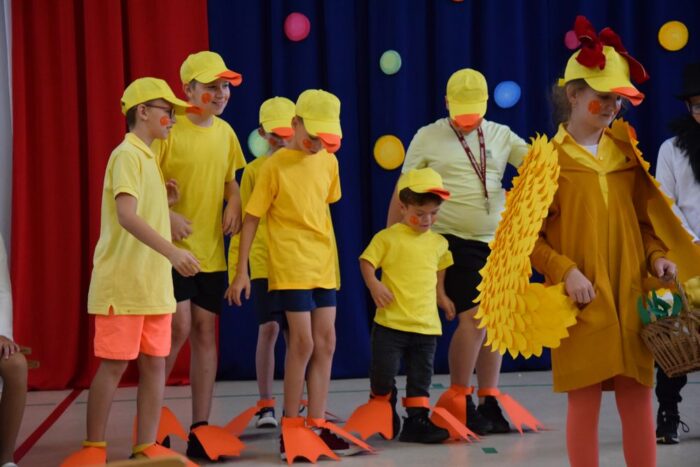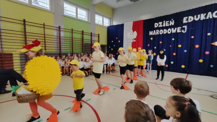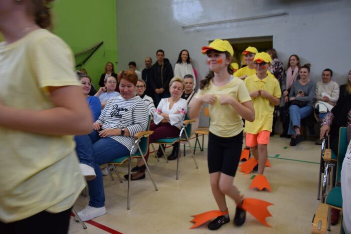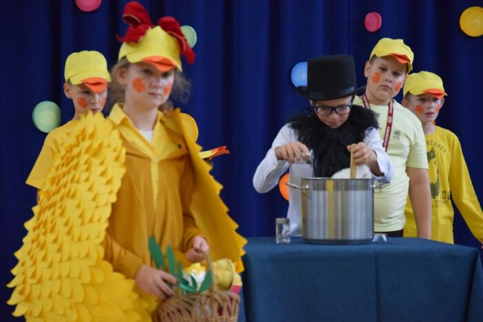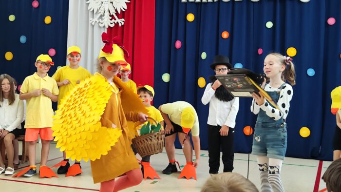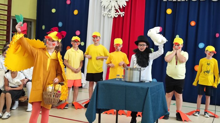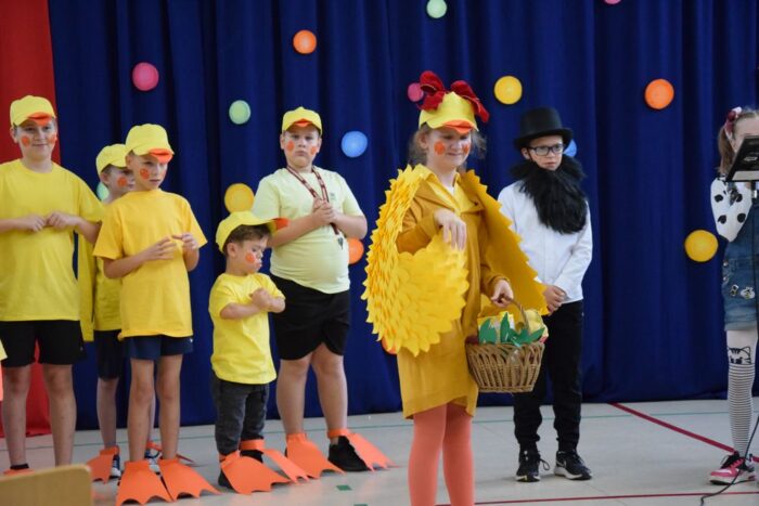 Klasy 4a i 5c pokazały swój kunszt aktorski wcielając się w postacie z książki Akademia Pana Kleksa, a mianowicie w Kaczkę Dziwaczkę wraz z kaczorkami i kaczuszkami oraz w Lenia z wiersza Jana Brzechwy.