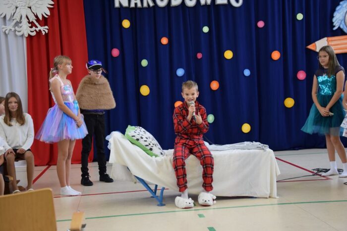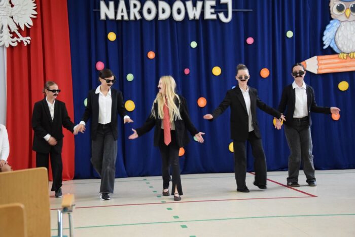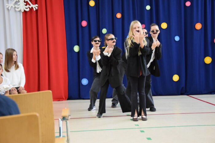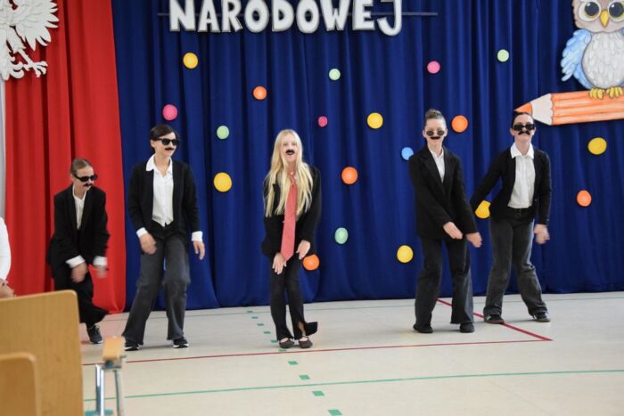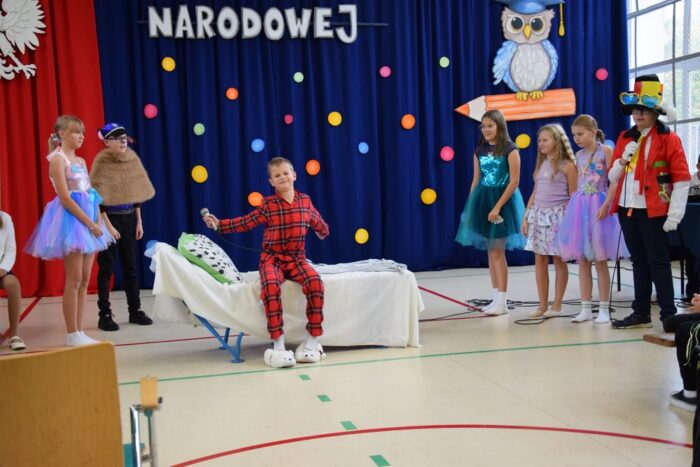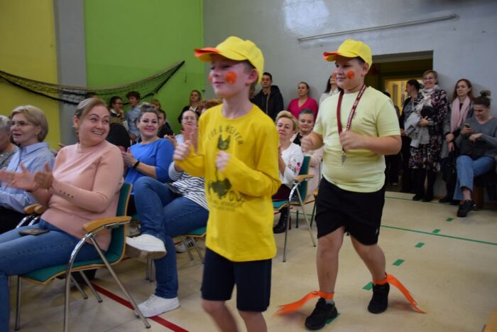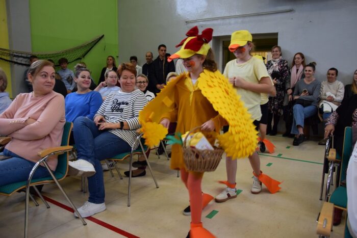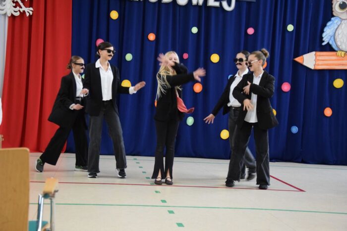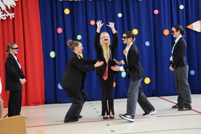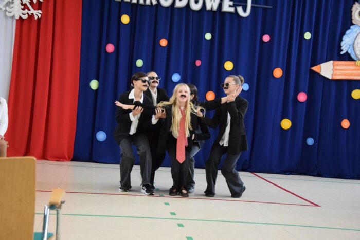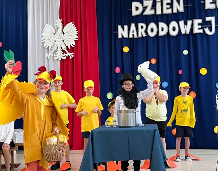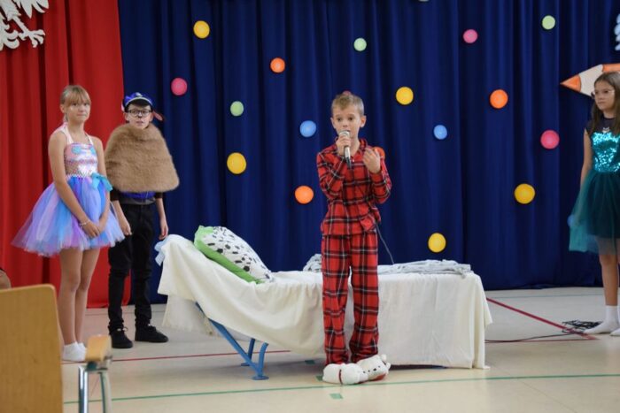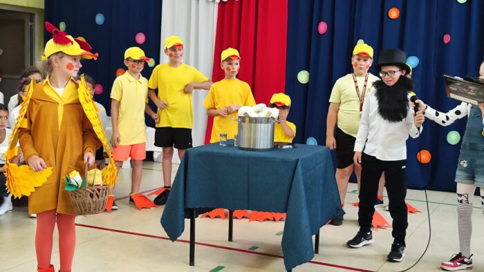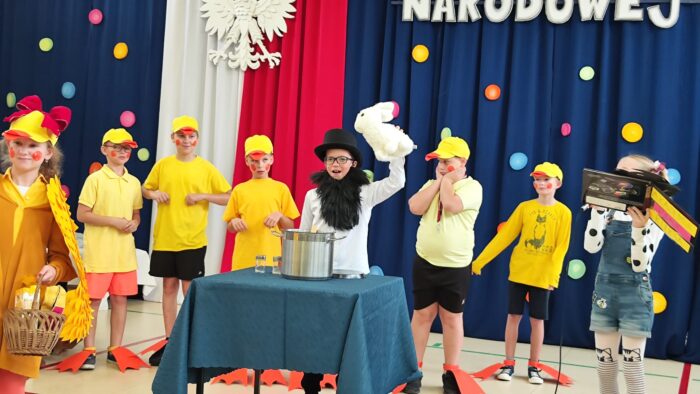 Klasy 4a i 5c pokazały swój kunszt aktorski wcielając się w postacie z książki Akademia Pana Kleksa, a mianowicie w Kaczkę Dziwaczkę wraz z kaczorkami i kaczuszkami oraz w Lenia z wiersza Jana Brzechwy.