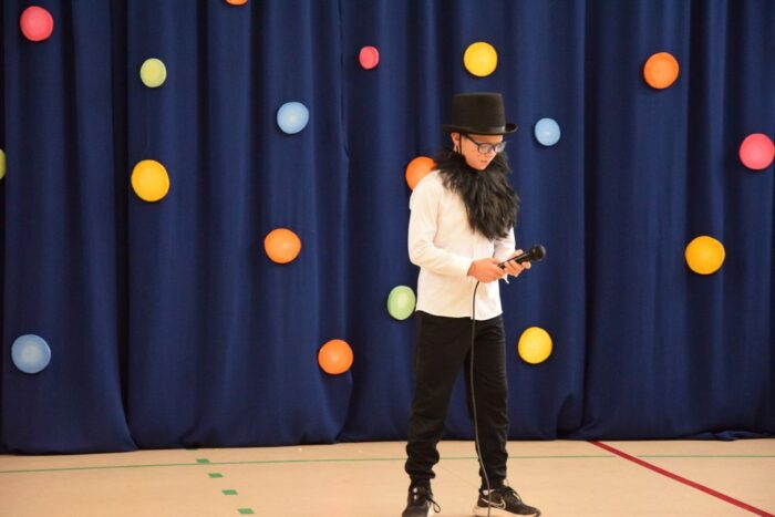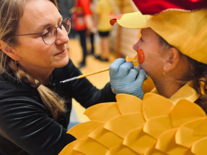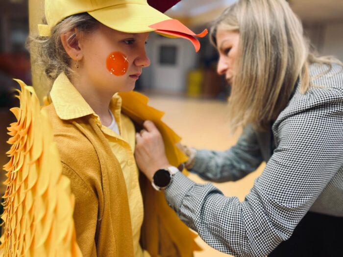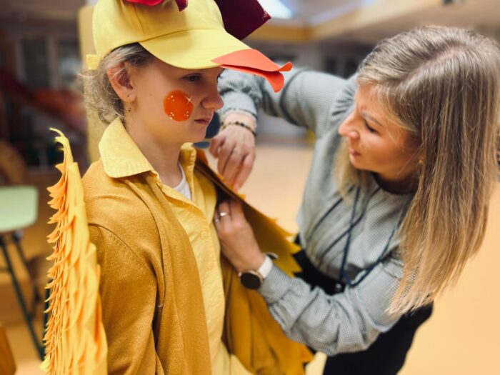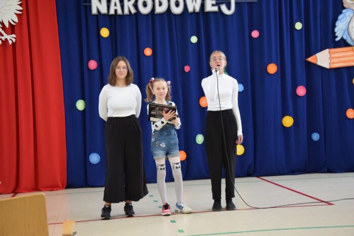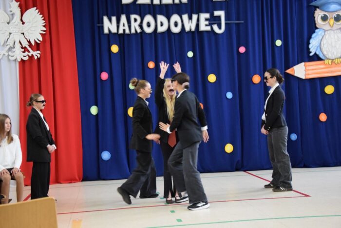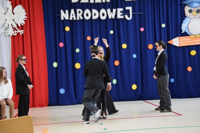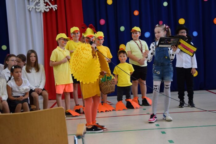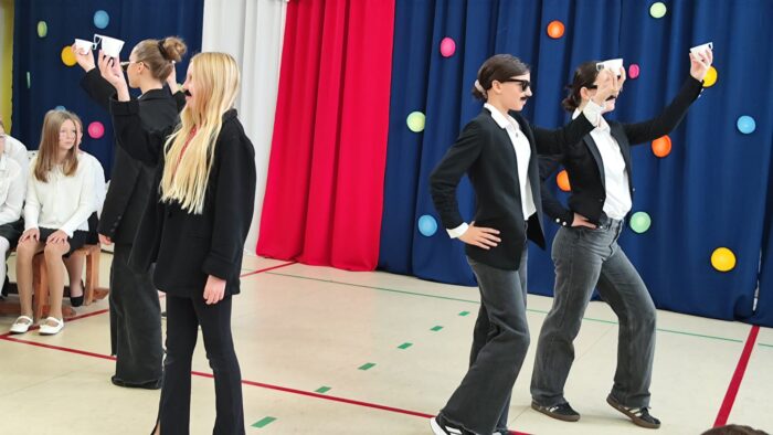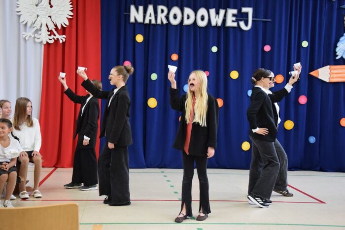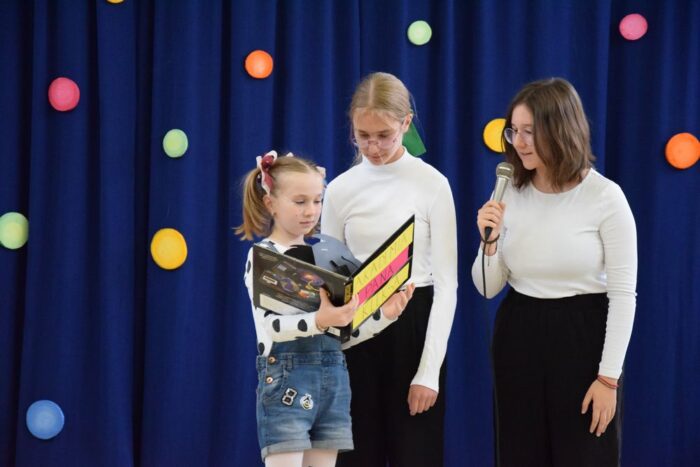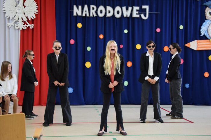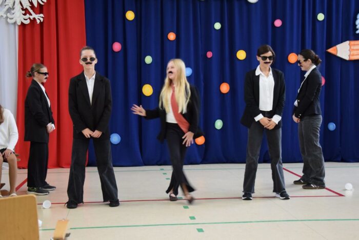 Klasy 4a i 5c pokazały swój kunszt aktorski wcielając się w postacie z książki Akademia Pana Kleksa, a mianowicie w Kaczkę Dziwaczkę wraz z kaczorkami i kaczuszkami oraz w Lenia z wiersza Jana Brzechwy.