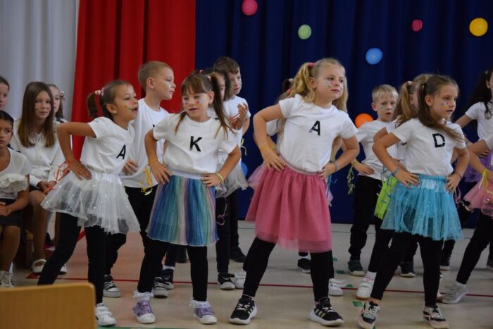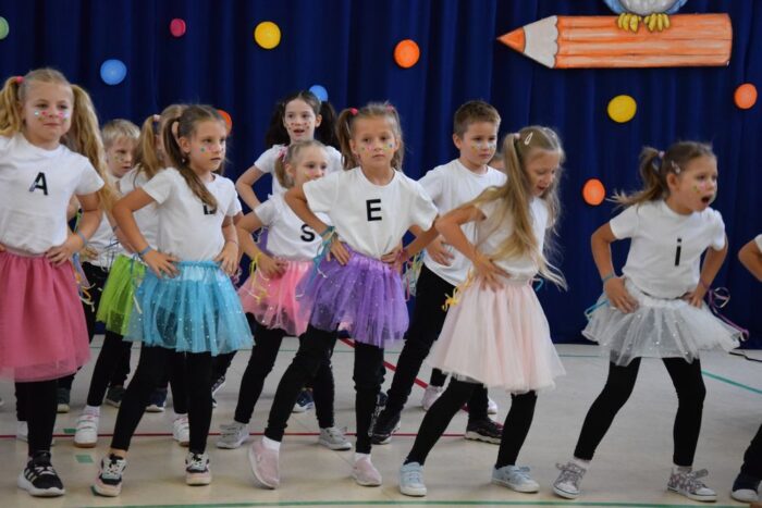 Następnie na moment wszyscy przenieśli się do cudownej Akademii niezwykłego dyrektora i nauczyciela Ambrożego Kleksa. Było: kolorowo, zabawnie i tanecznie.
