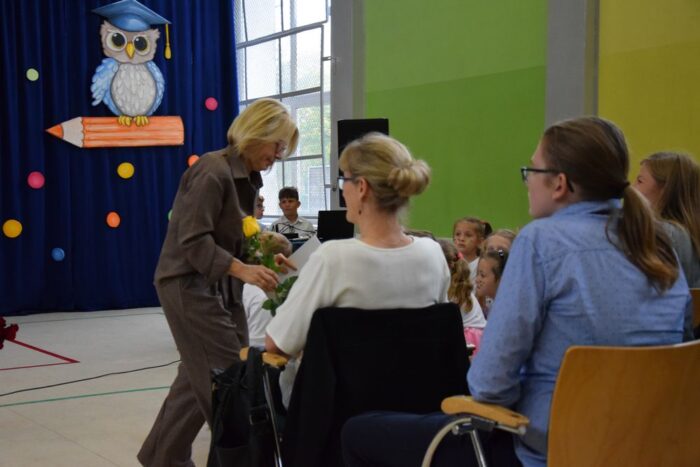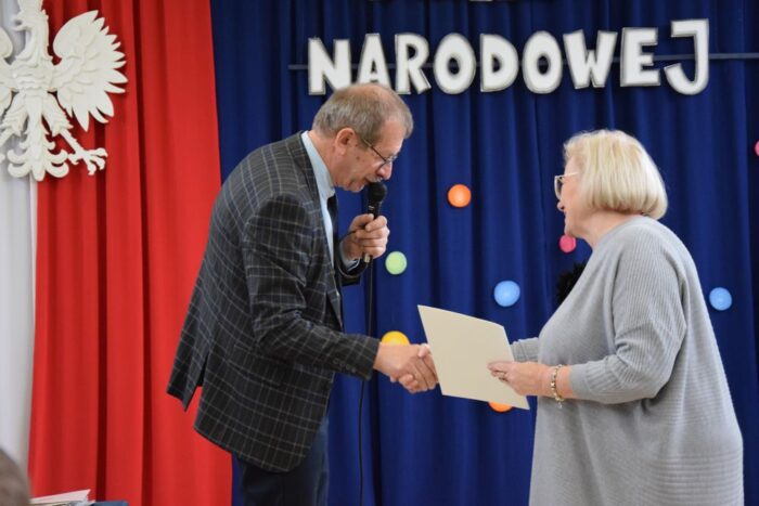 Na koniec akademii pana dyrektor wręczył kwiaty, listy gratulacyjne i nagrody nauczycielom i pracownikom obsługi za ich pracę.