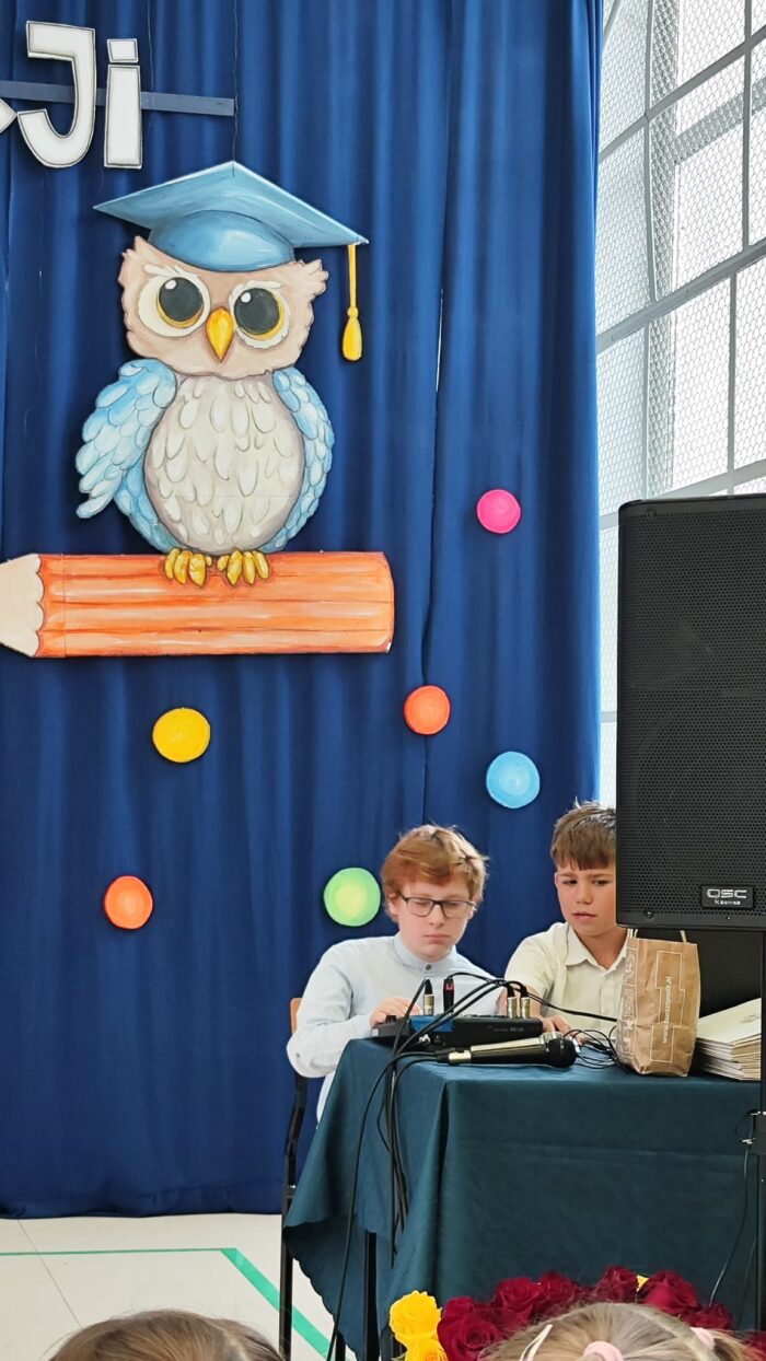 Dziękujemy wszystkim osobom czynnie zaangażowanym w przygotowanie tej uroczystości: dzieciom, rodzicom uczniów klasy 4a i 5c, nauczycielom, którzy opiekowali się klasami podczas prób oraz naszym sprzętowcom z klasy 5c.