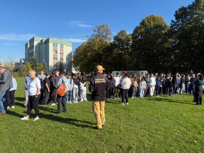 W dniu 23 października 2025 w naszej szkole odbył się próbny alarm przeciwpożarowy. Celem ćwiczenia było sprawdzenie, jak uczniowie, nauczyciele i pracownicy szkoły potrafią zachować się w sytuacji zagrożenia pożarem oraz jak sprawnie przebiega ewakuacja z budynku.