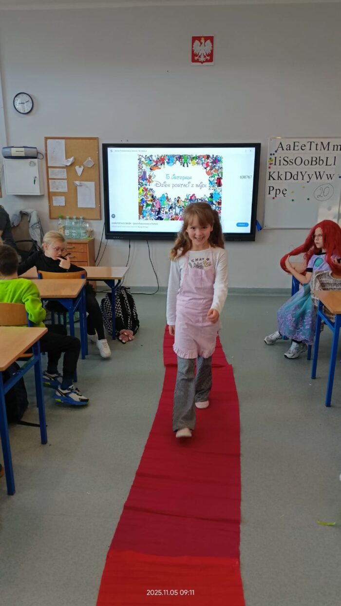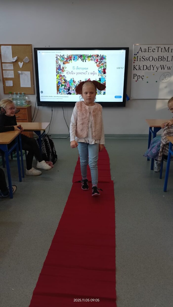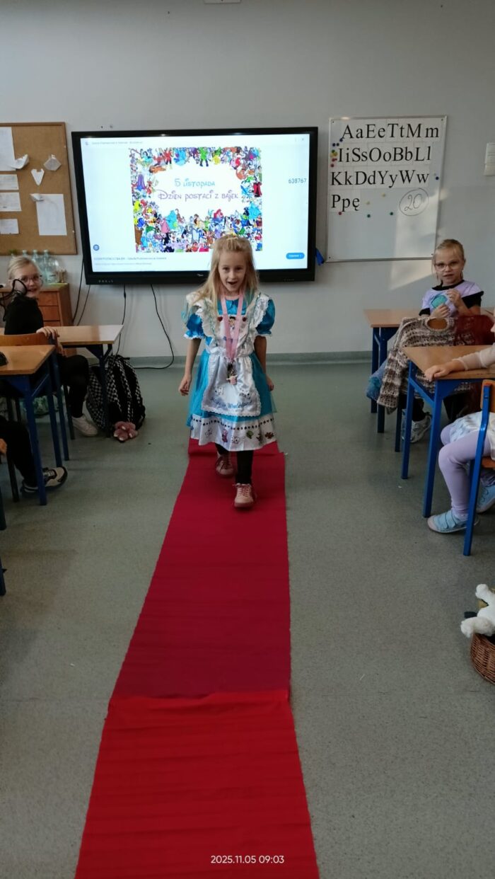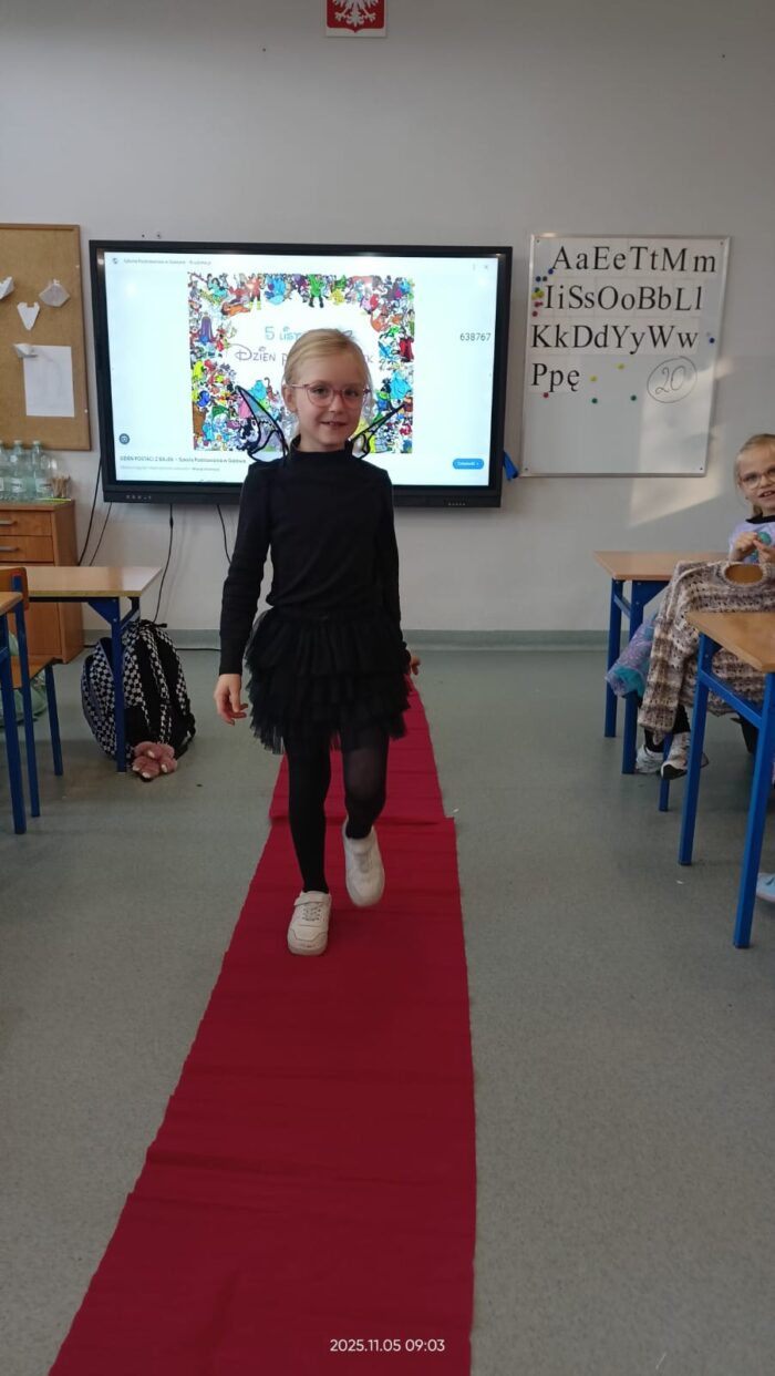 Dziś Dzień Postaci z Bajek więc klasa 1b już od rana była ubrana w piękne bajkowe stroje i na czerwonym dywanie przedstawiała swoją postać. Były również konkursy i zabawy. Czytaliśmy bajki i słuchaliśmy bajki.