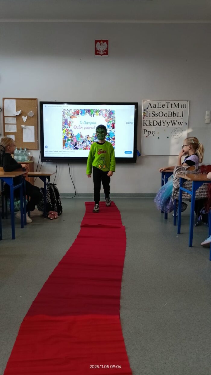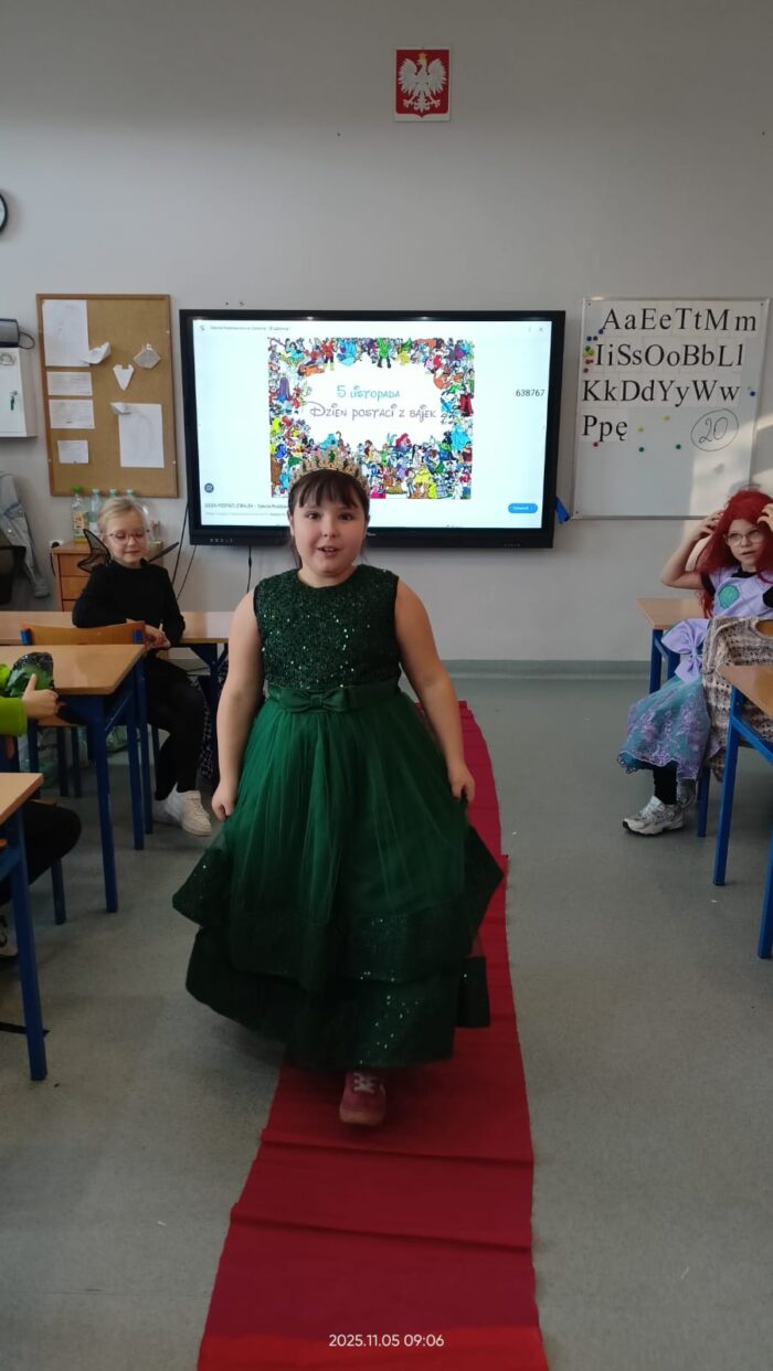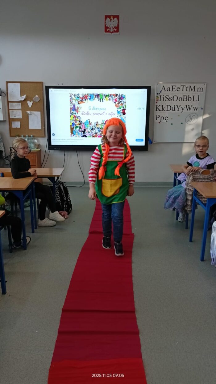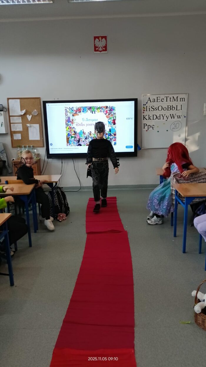 Dziś Dzień Postaci z Bajek więc klasa 1b już od rana była ubrana w piękne bajkowe stroje i na czerwonym dywanie przedstawiała swoją postać. Były również konkursy i zabawy. Czytaliśmy bajki i słuchaliśmy bajki.
