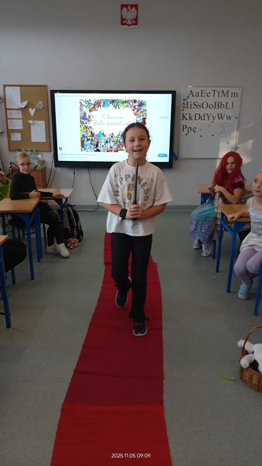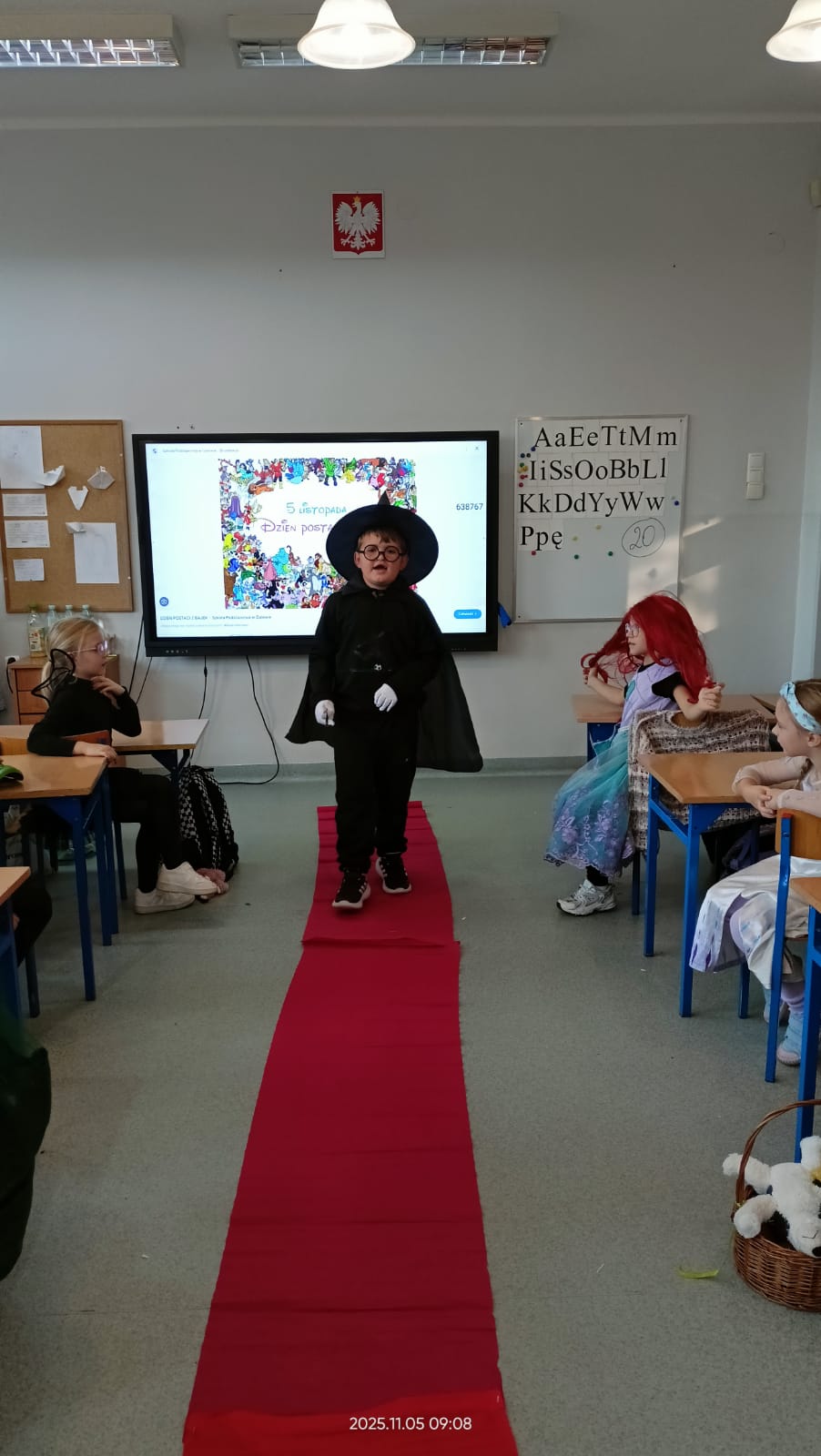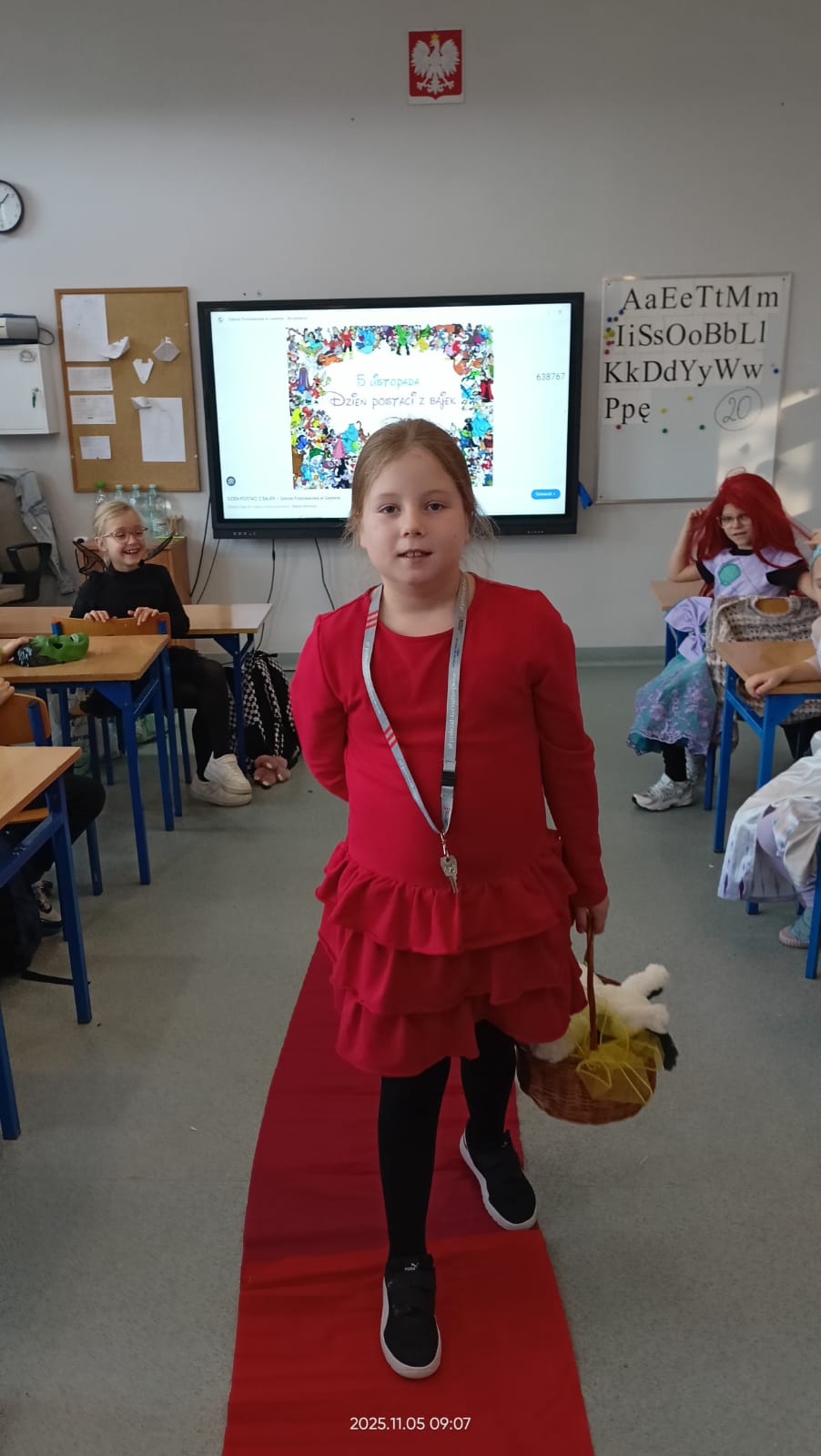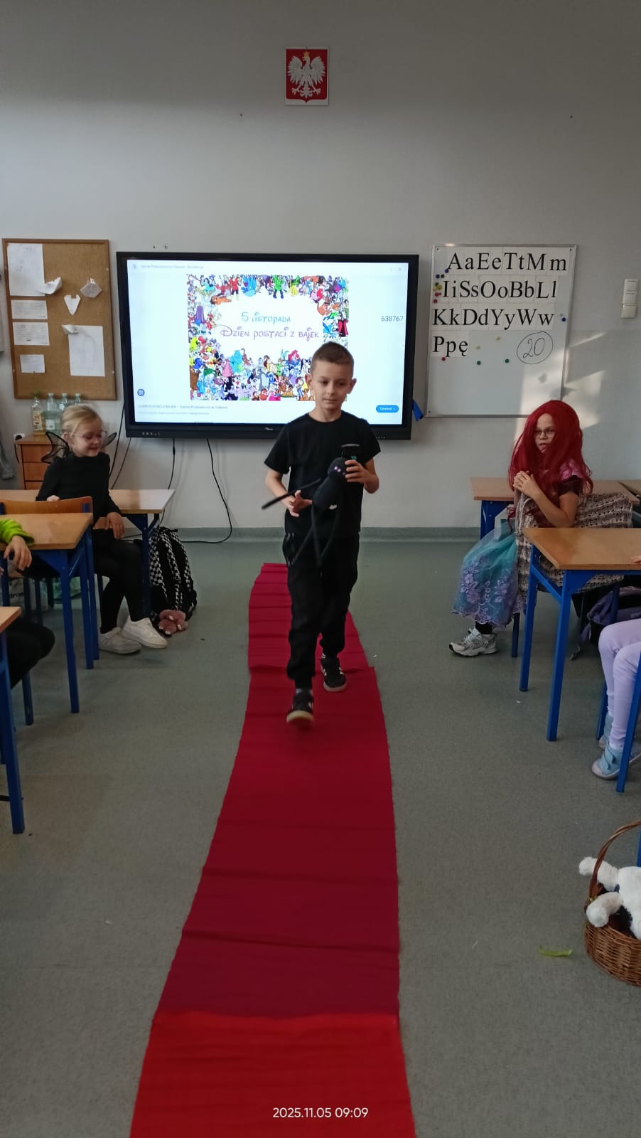 Dziś Dzień Postaci z Bajek więc klasa 1b już od rana była ubrana w piękne bajkowe stroje i na czerwonym dywanie przedstawiała swoją postać. Były również konkursy i zabawy. Czytaliśmy bajki i słuchaliśmy bajki.