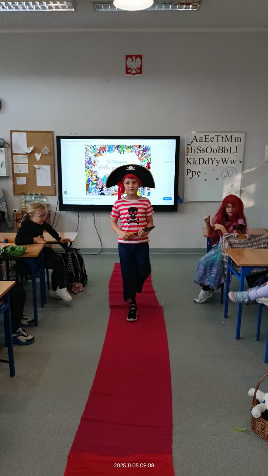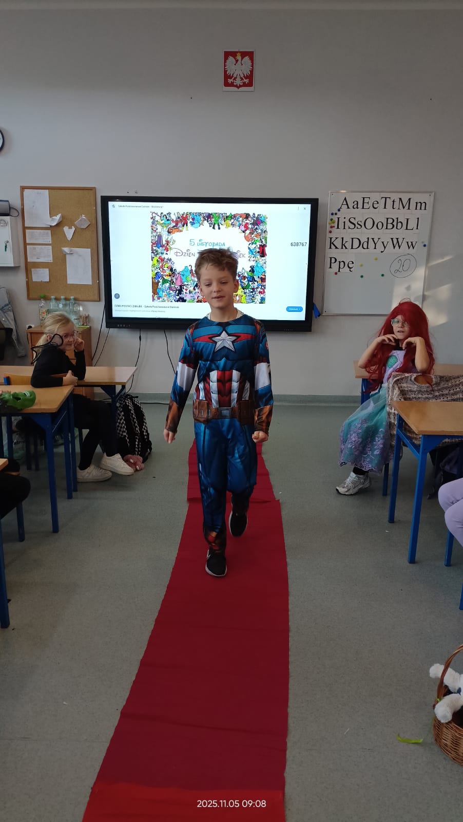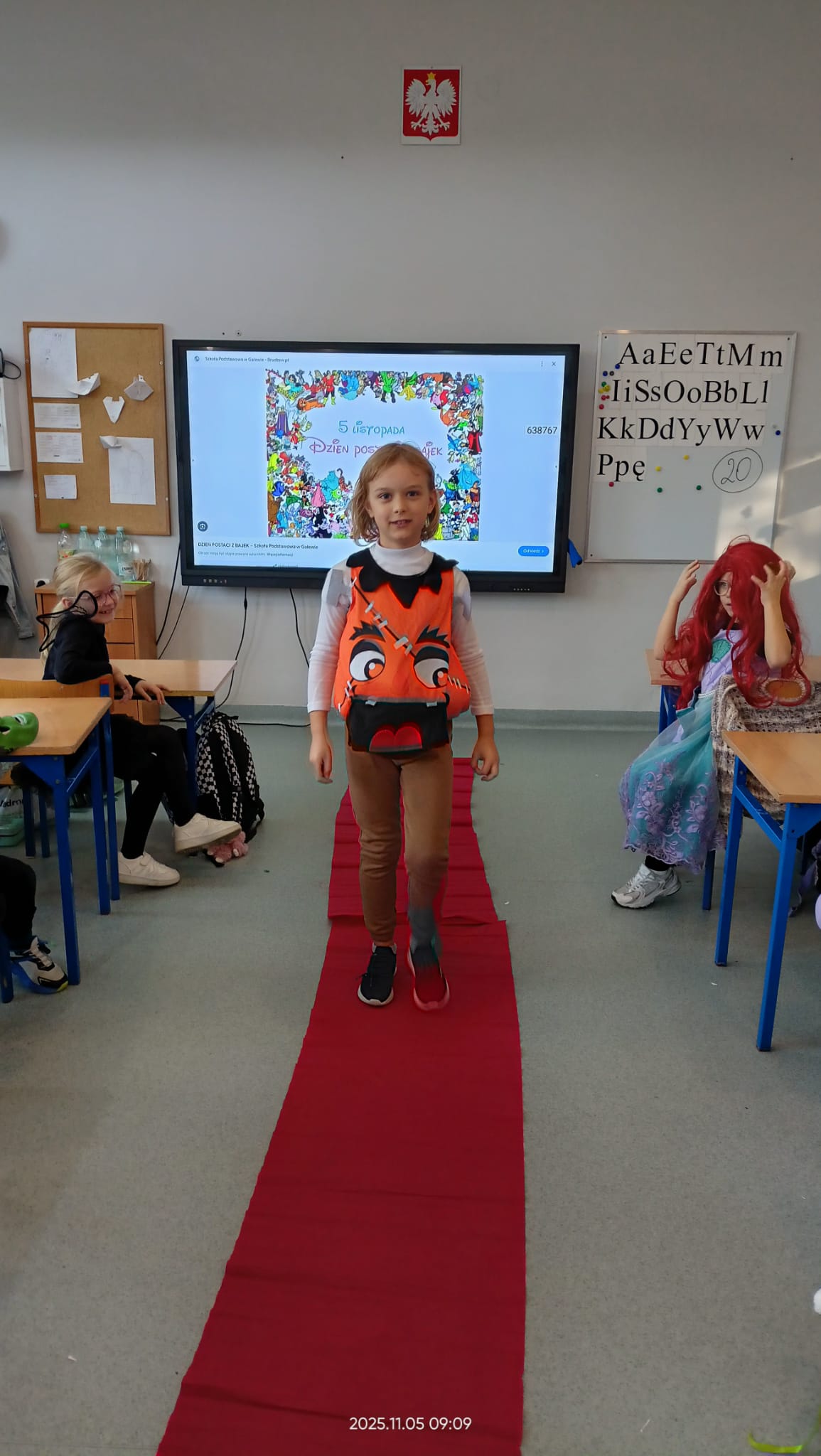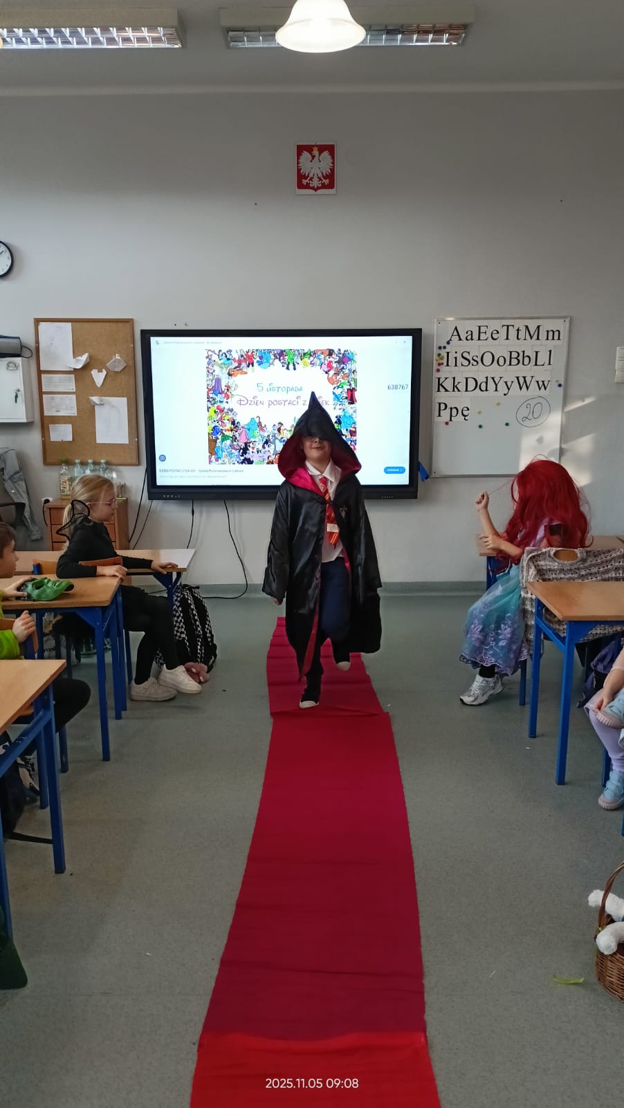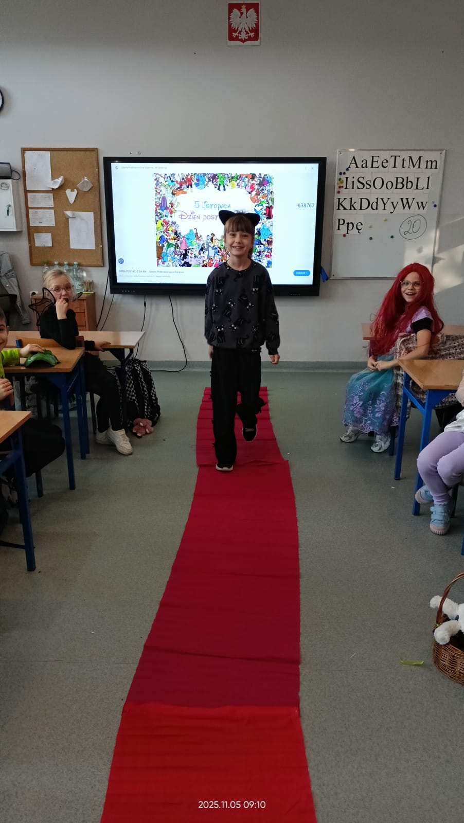 Dziś Dzień Postaci z Bajek więc klasa 1b już od rana była ubrana w piękne bajkowe stroje i na czerwonym dywanie przedstawiała swoją postać. Były również konkursy i zabawy. Czytaliśmy bajki i słuchaliśmy bajki.