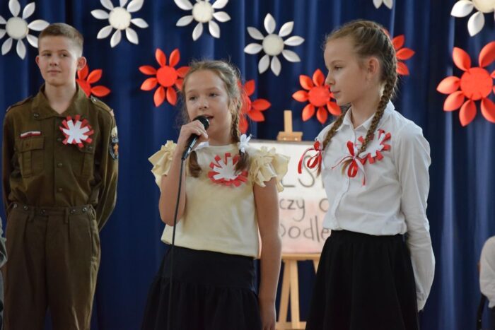 My – nauczyciele, uczniowie, rodzice i pracownicy obsługi staraliśmy się, aby jak najlepiej zrealizować ten projekt. Wspólna praca sprawiła, że było patriotycznie, wzruszająco i godnie.