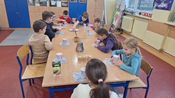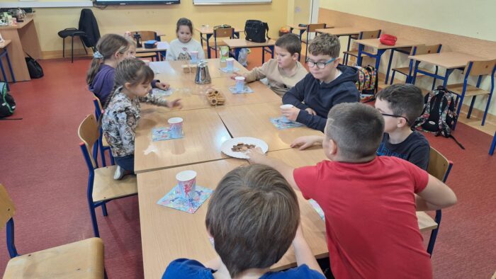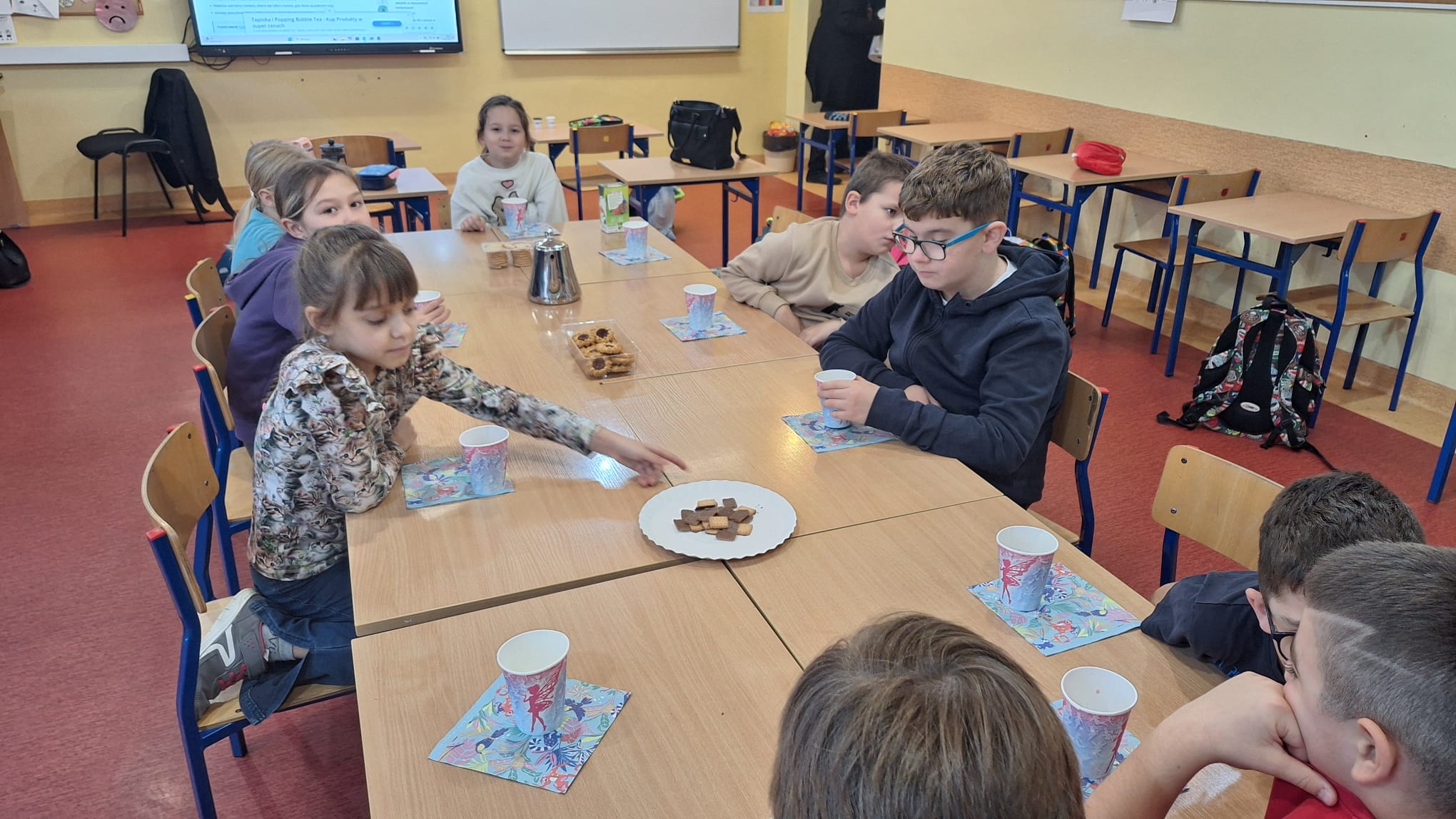 W mijającym tygodniu uczniowie klasy 3a wybrali się w podróż po największym kontynencie Azji. Przy tej okazji urządzili w klasie herbaciarnię. Można było powąchać i posmakować różnych naparów i herbatek. Do herbaty były herbatniczki. Lekcja była wspaniała, a herbatka dzieciom smakowała.