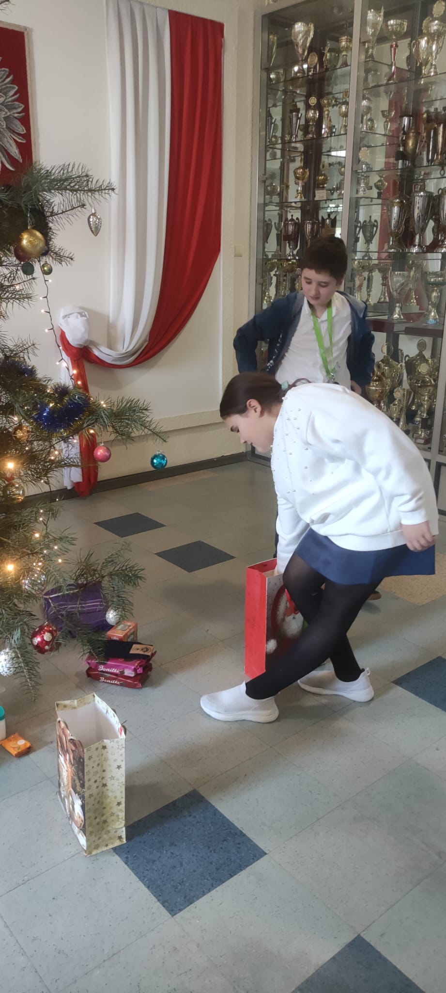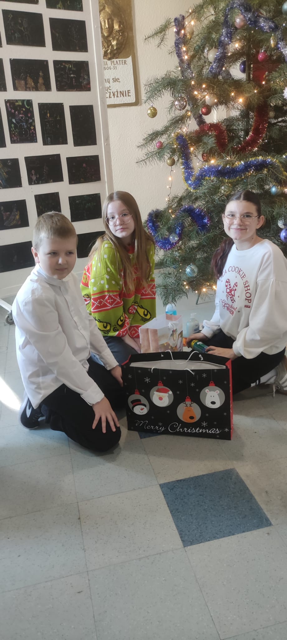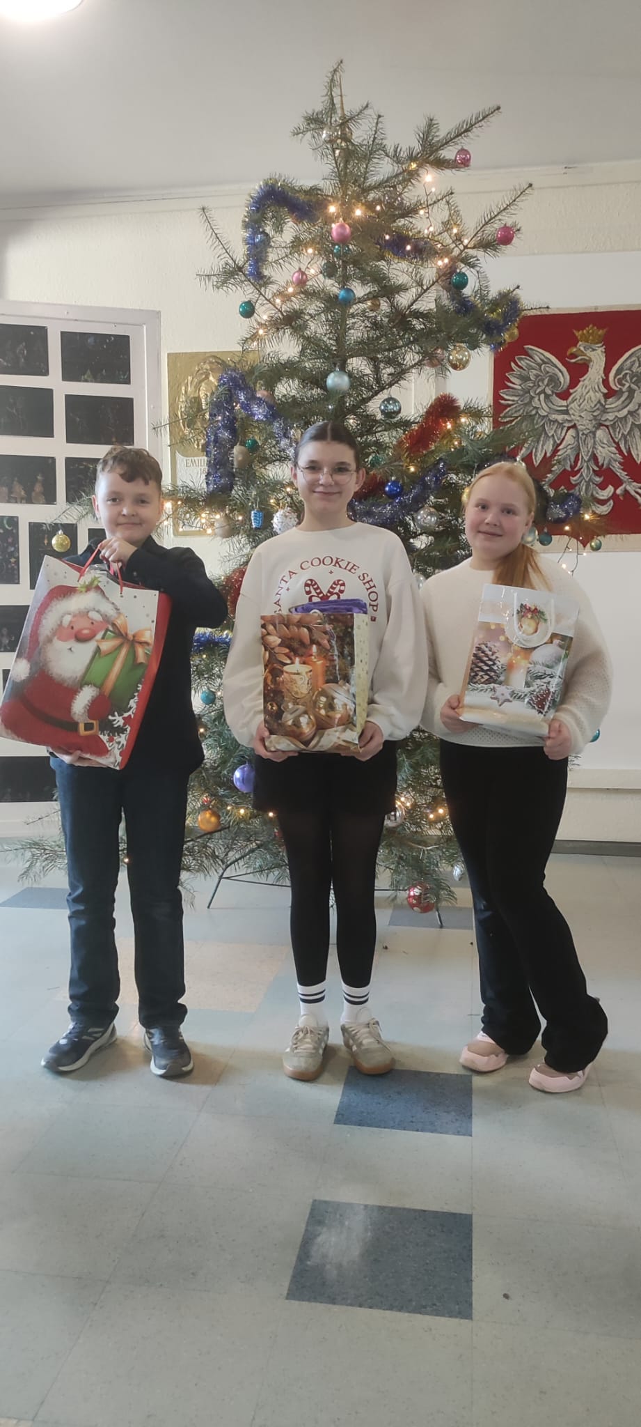Uczniowie ubrani byli świątecznie, a wyjątkowy nastrój dopełnił krótki występ artystyczny. Dzieci zaśpiewały piosenkę „Santa Claus Is Coming to Town”, wprowadzając wszystkich w atmosferę nadchodzących Świąt.