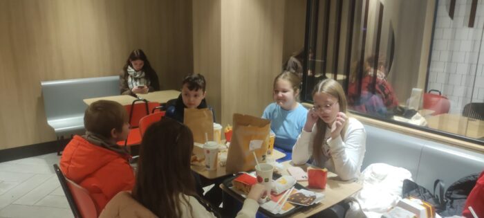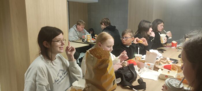 Następnie grupa udała się pieszo do restauracji McDonald’s, gdzie uczniowie mogli spokojnie zjeść posiłek i odpocząć przed dalszym zwiedzaniem.