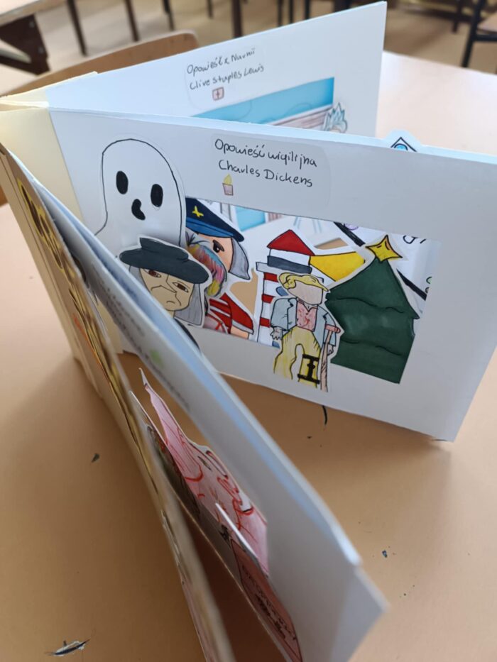 W tym roku powtórki treści lektur wyglądały nieco inaczej niż zwykle. Uczniowie wybrali po kilka ulubionych lektur i z nimi stworzyli książki tunelowe. Książka tunelowa to trójwymiarowa, przestrzenna książka, która tworzy iluzję głębi i perspektywy dzięki harmonijkowej konstrukcji z papierowych ramek (ekranów) umieszczonych jedna za drugą, połączonych z papierową harmonijką. Patrząc przez okno w okładce, czytelnik widzi scenę rozwijającą się w głąb, z postaciami i elementami, które mogą się wysuwać na pierwszy plan, co czyni ją interaktywną i angażującą wizualnie.