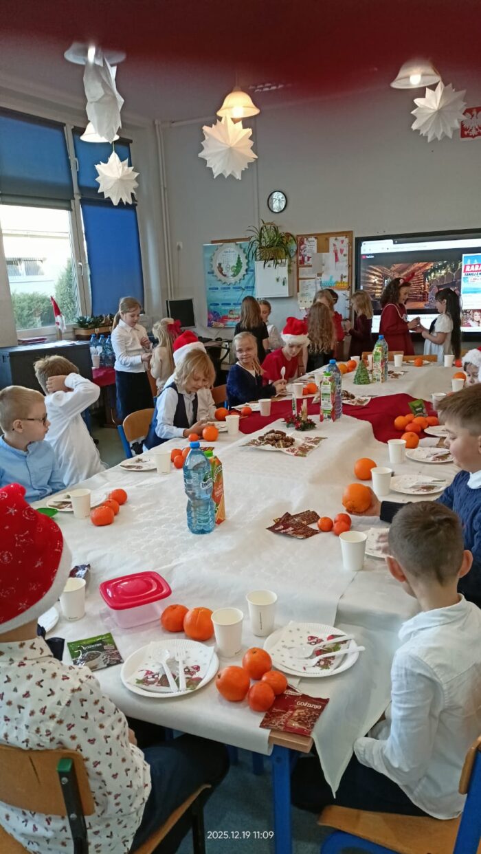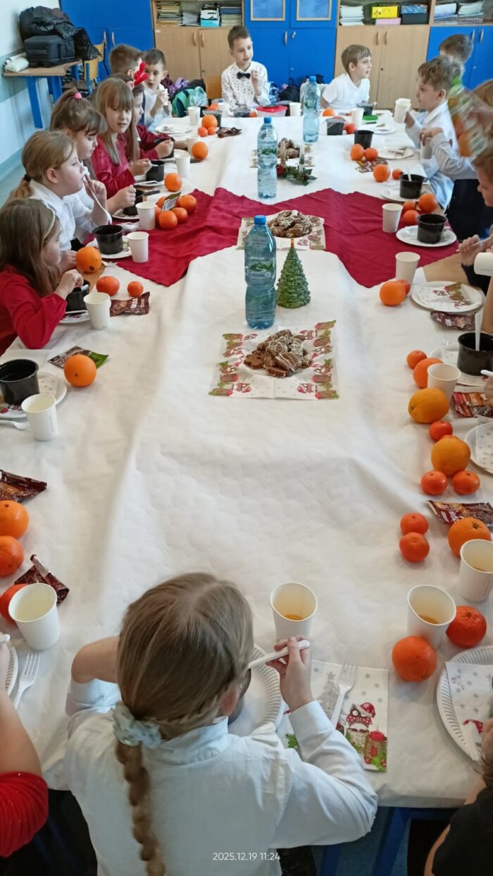 Wigilia w klasie 1b 🌲 Wigilia w klasie 1b 🌲 była pełna wrażeń. Piosenki świąteczne, barszcz z uszkami i pierogi oraz prezenty i oczywiście występ naszej skrzypaczki Hani.Dziękujemy rodzicom za pomoc w organizacji.Życzymy wszystkim zdrowych i pełnych radości Świąt. 🌲❣