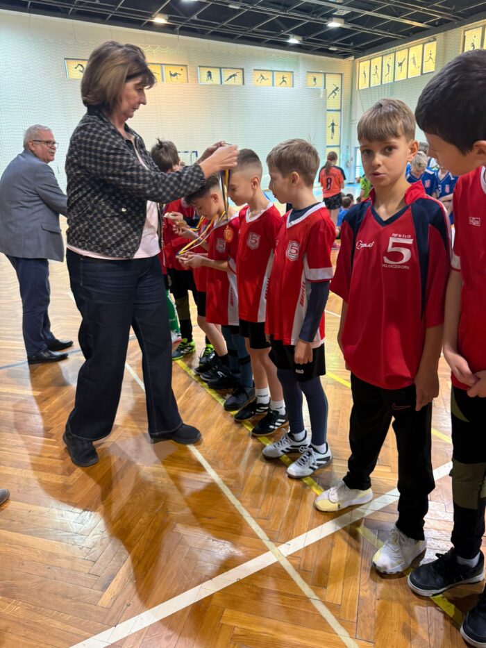 Hala sportowa eksplodowała radością – mamy złoto! Gdy rozległ się ostatni gwizdek finałowych zmagań, stało się jasne, że chłopcy z PSP nr 5 w Kluczborku sięgnęli po złoty medal i tytuł Mistrzów Województwa Opolskiego w turnieju gier i zabaw „Mały Olimpijczyk”. Emocje sięgały zenitu, a w powietrzu mieszały się okrzyki radości, wzruszenie i duma. 18 grudnia 2025 r. to data, która na długo pozostanie w naszej pamięci – tego dnia nasi uczniowie zapisali piękną kartę w historii sportowych sukcesów szkoły.