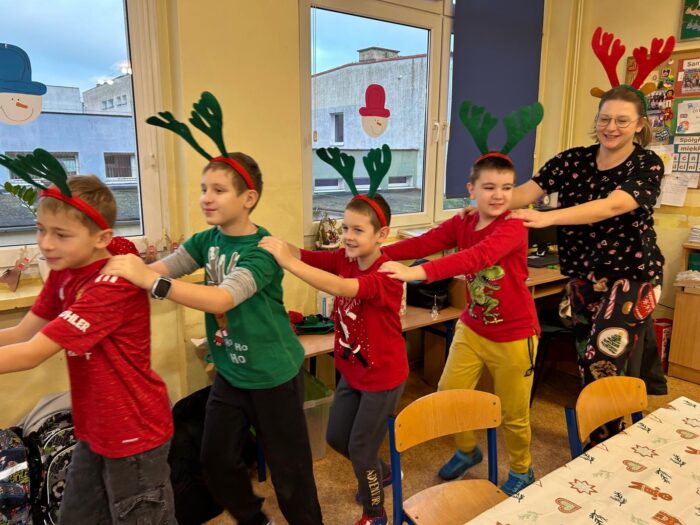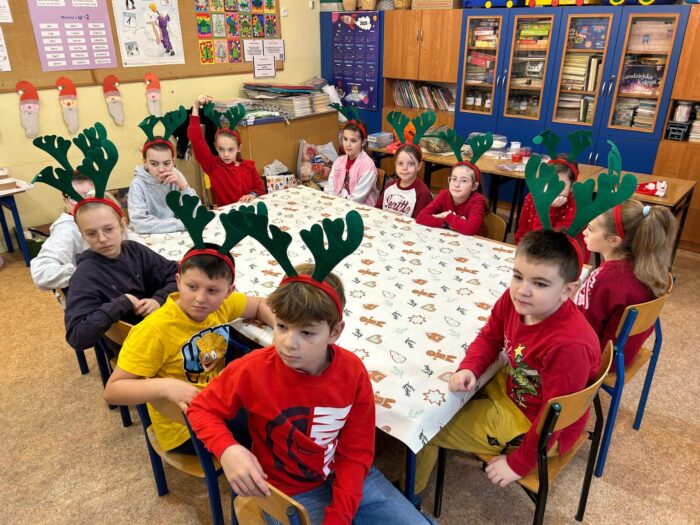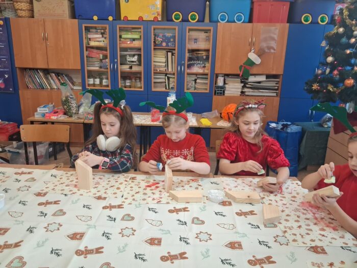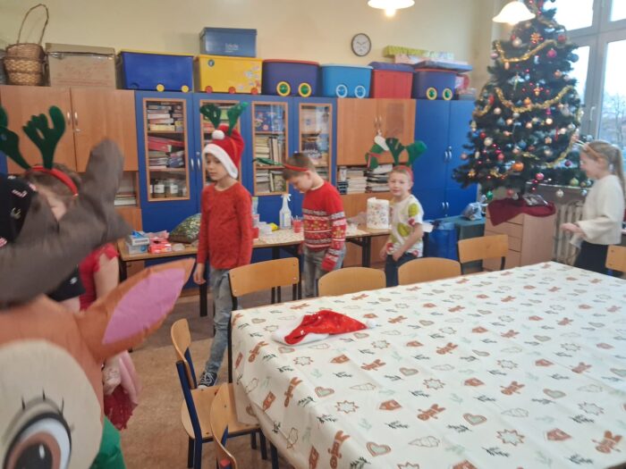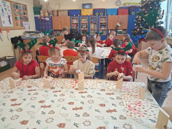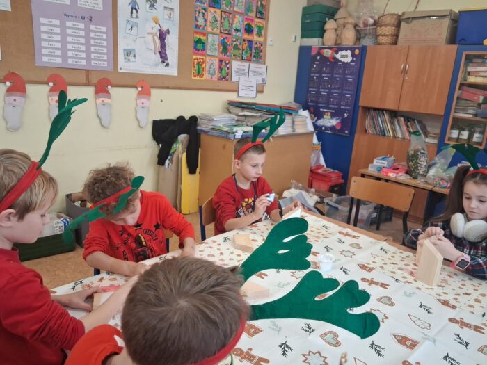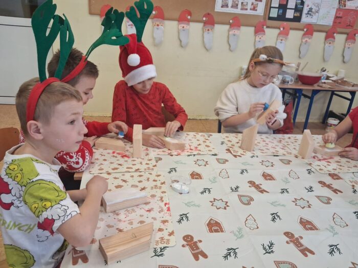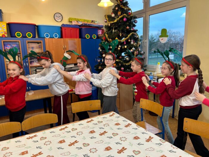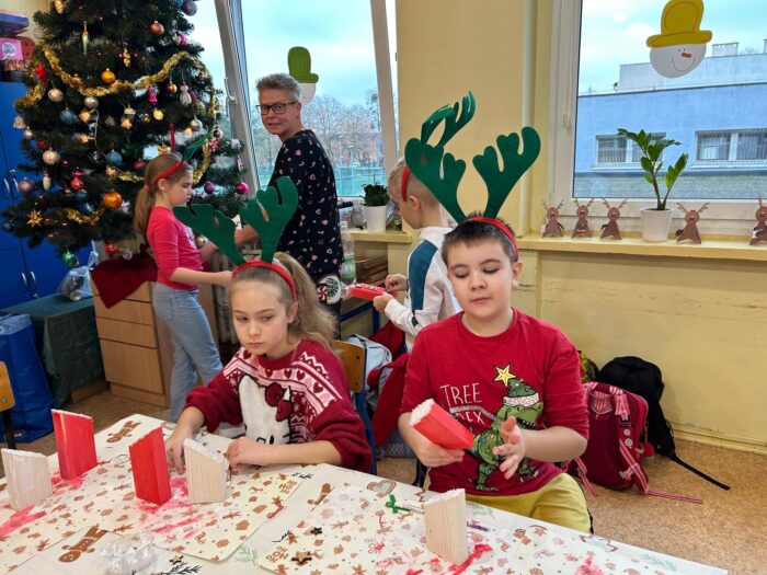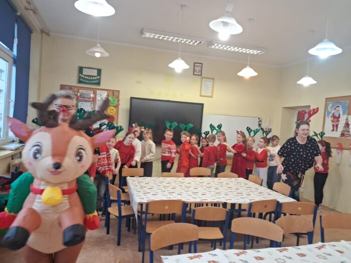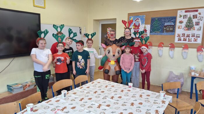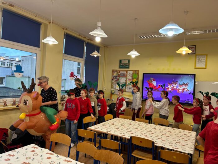 12 grudnia uczniowie klasy 2b, 3a i 3c wzięli udział w Magicznych Warsztatach świątecznych z Rudolfem. W trakcie zajęć dzieci wykonały drewniane domki, przyrządziły piernikowy deser, wzięły udział świątecznych zabawach i tańcach. Na zakończenie mogły zrobić sobie zdjęcie z pomocnikiem Mikołaja i otrzymały od niego prezent.