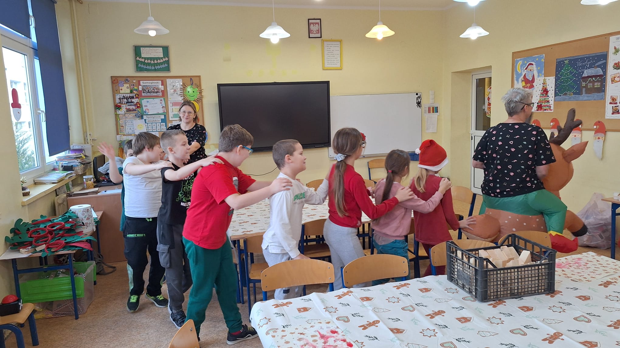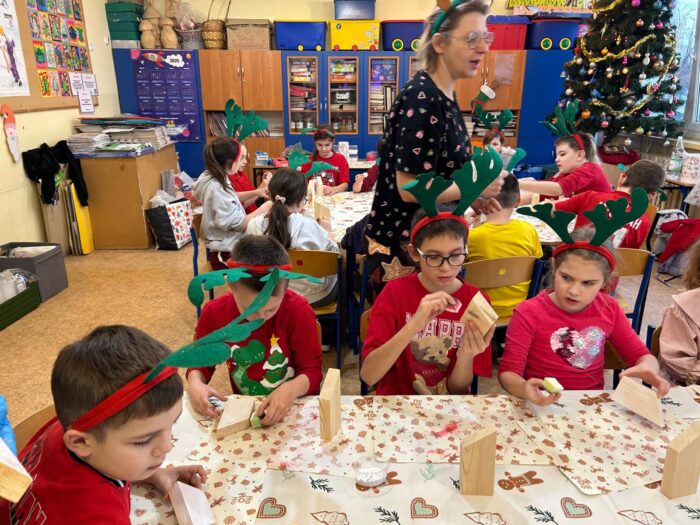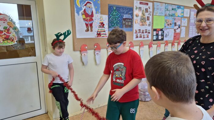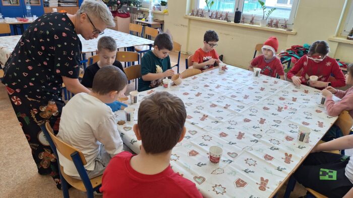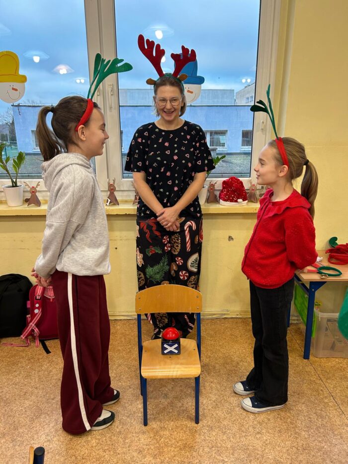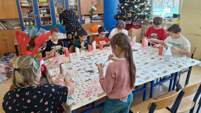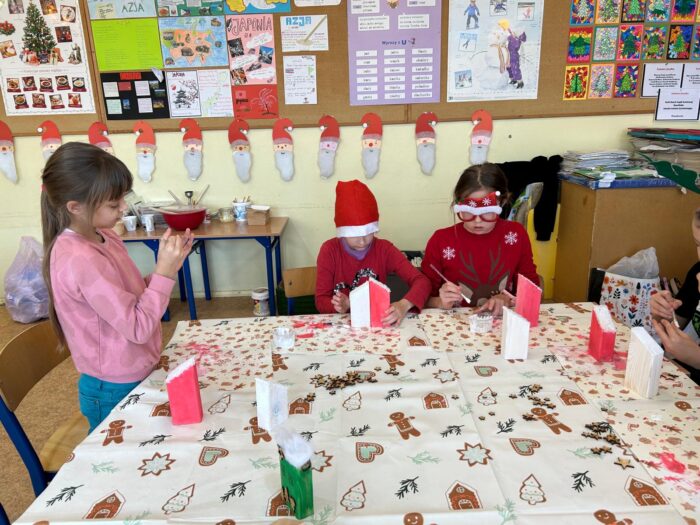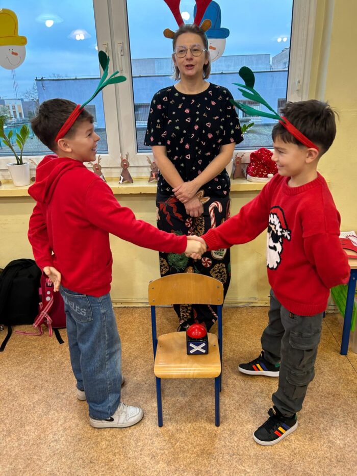 12 grudnia uczniowie klasy 2b, 3a i 3c wzięli udział w Magicznych Warsztatach świątecznych z Rudolfem. W trakcie zajęć dzieci wykonały drewniane domki, przyrządziły piernikowy deser, wzięły udział świątecznych zabawach i tańcach. Na zakończenie mogły zrobić sobie zdjęcie z pomocnikiem Mikołaja i otrzymały od niego prezent.