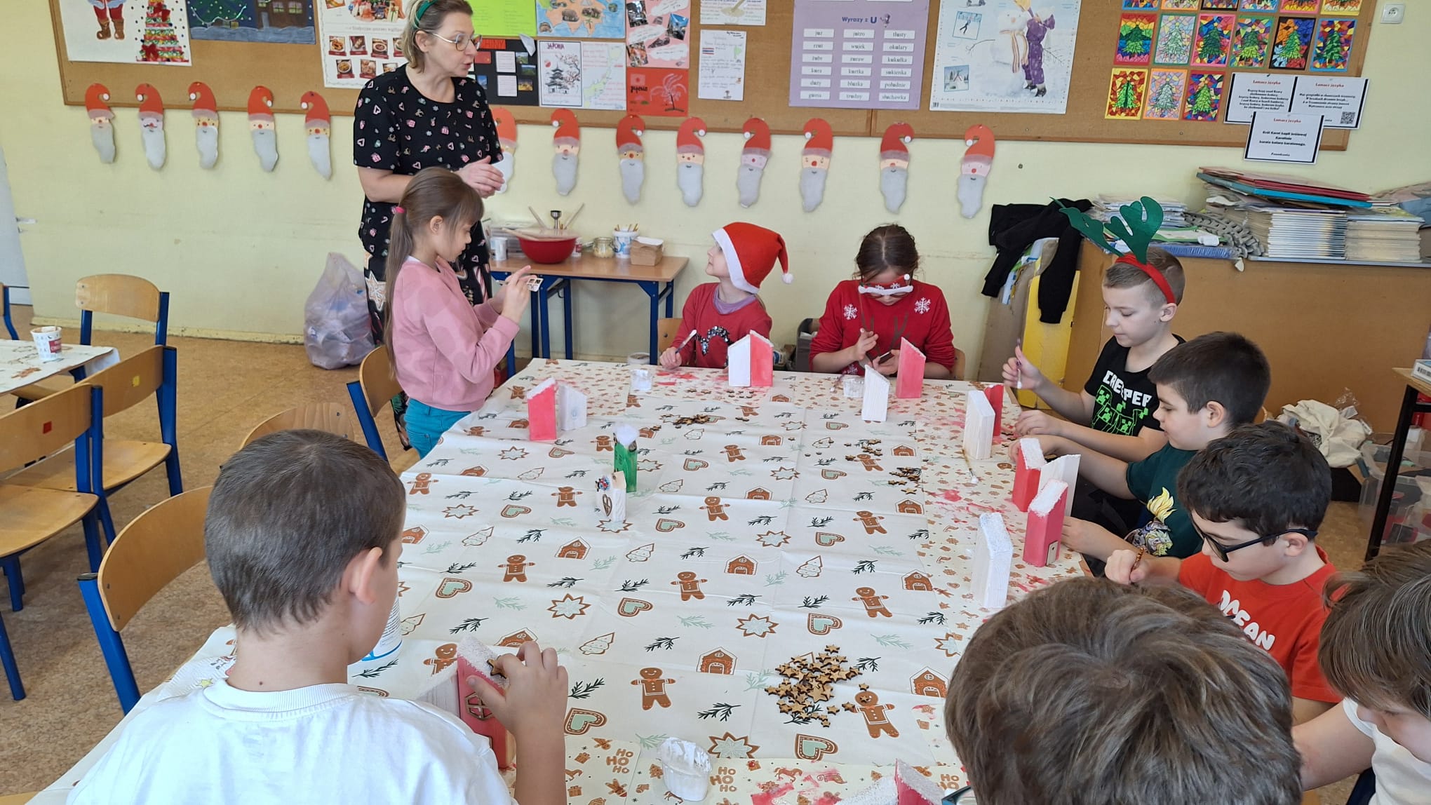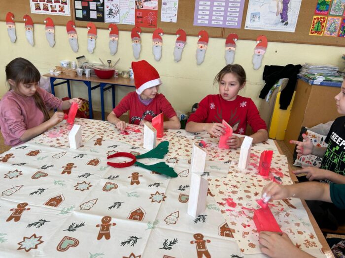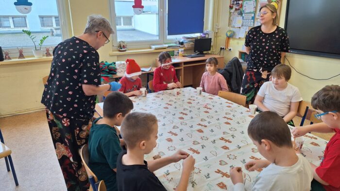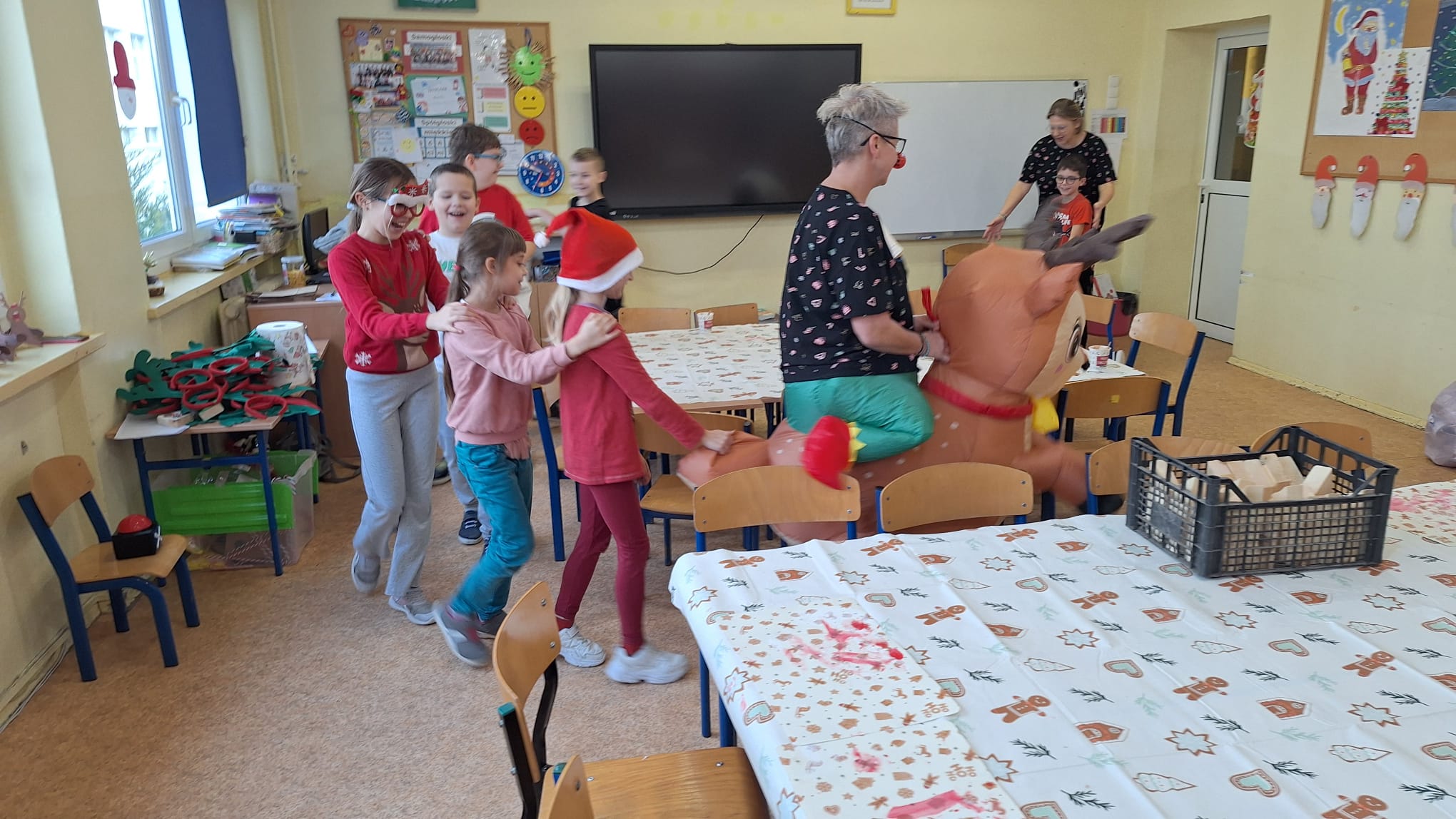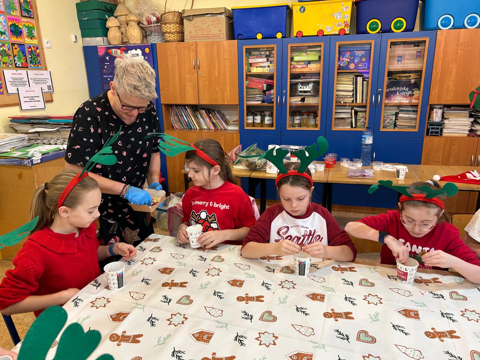12 grudnia uczniowie klasy 2b, 3a i 3c wzięli udział w Magicznych Warsztatach świątecznych z Rudolfem. W trakcie zajęć dzieci wykonały drewniane domki, przyrządziły piernikowy deser, wzięły udział świątecznych zabawach i tańcach. Na zakończenie mogły zrobić sobie zdjęcie z pomocnikiem Mikołaja i otrzymały od niego prezent.