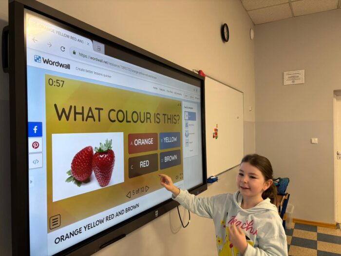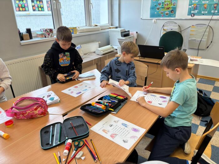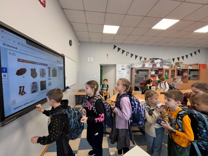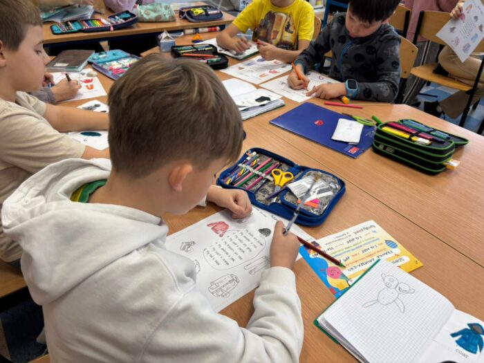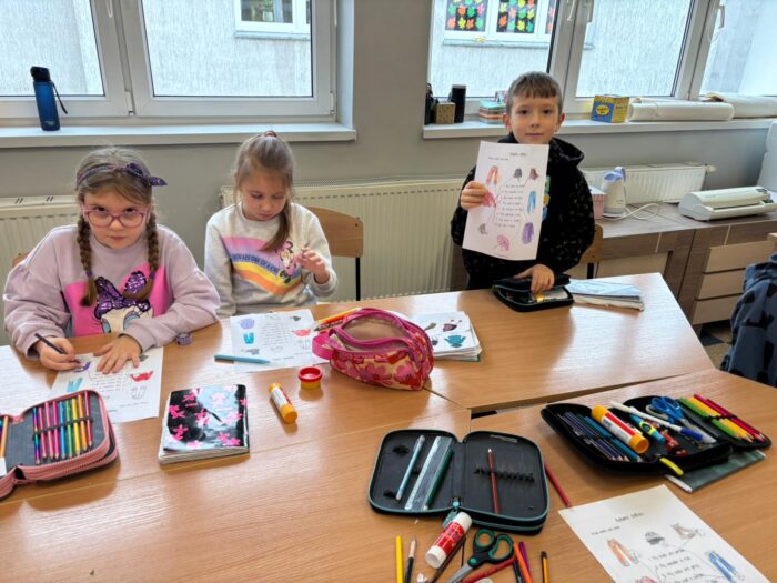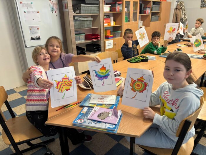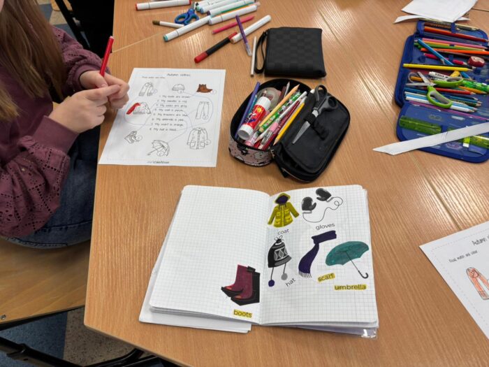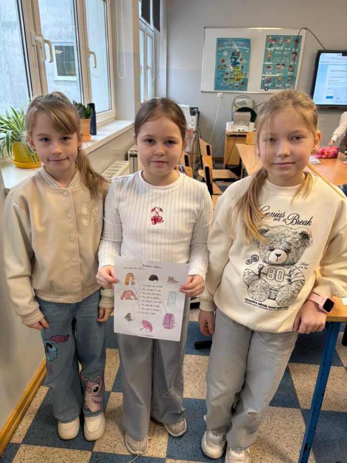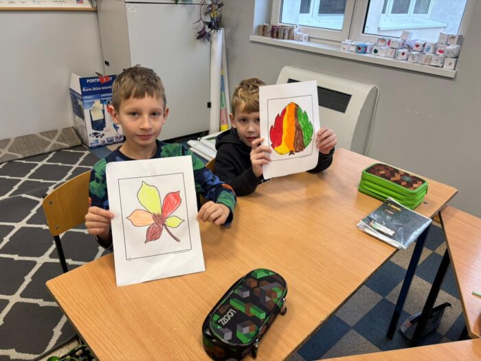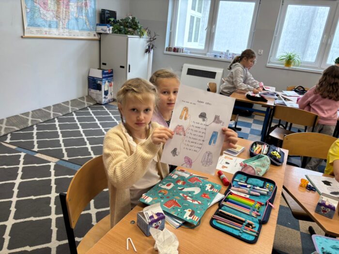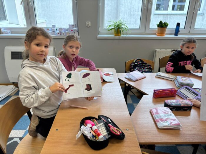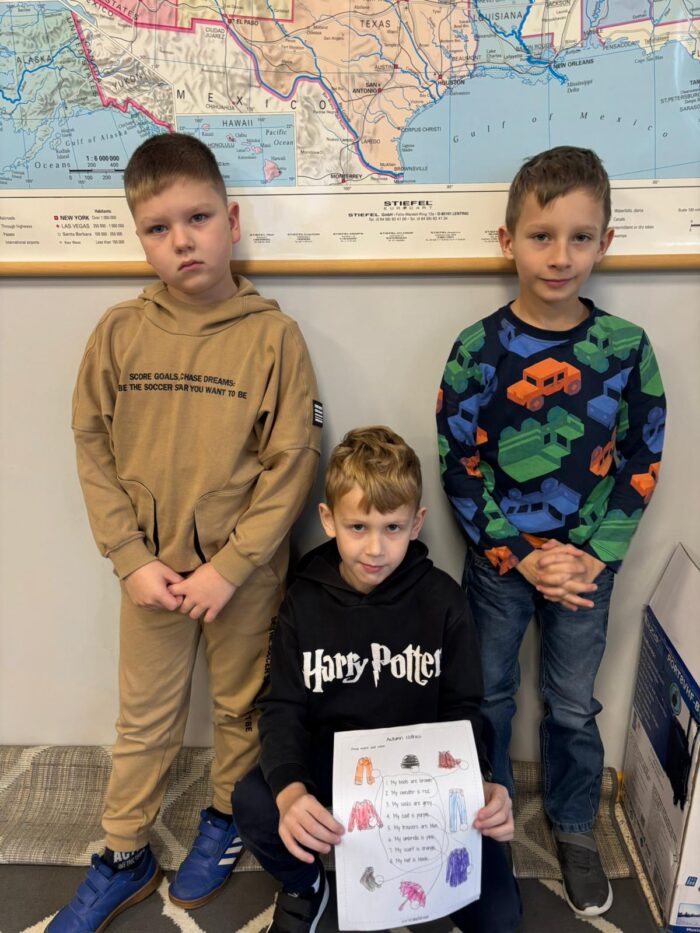 Zaj臋cia w klasach j臋zykowych 2b oraz 2c w temacie ubra艅 jesiennych. Dzieci mia艂y mo偶liwo艣膰 utrwali膰 nazwy ubra艅, kt贸re nosz膮 jesieni膮 oraz nazwy zwierz膮tek kt贸re mog膮 spotka膰 jesieni膮 w lesie . Dzieci wykonywa艂y swoje w艂asne jesienne li艣cie , powtarza艂y nazwy kolor贸w oraz tego co jest ukryte jesieni膮 w lesie czy parku , jak kasztany, szyszki, 偶o艂臋dzie .