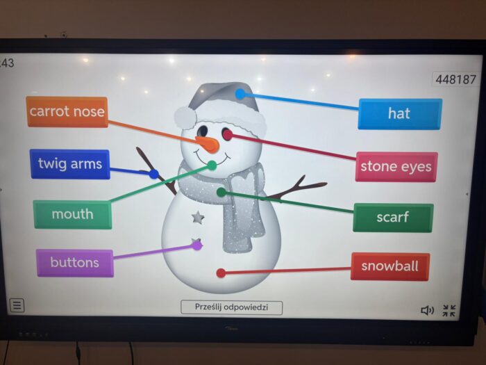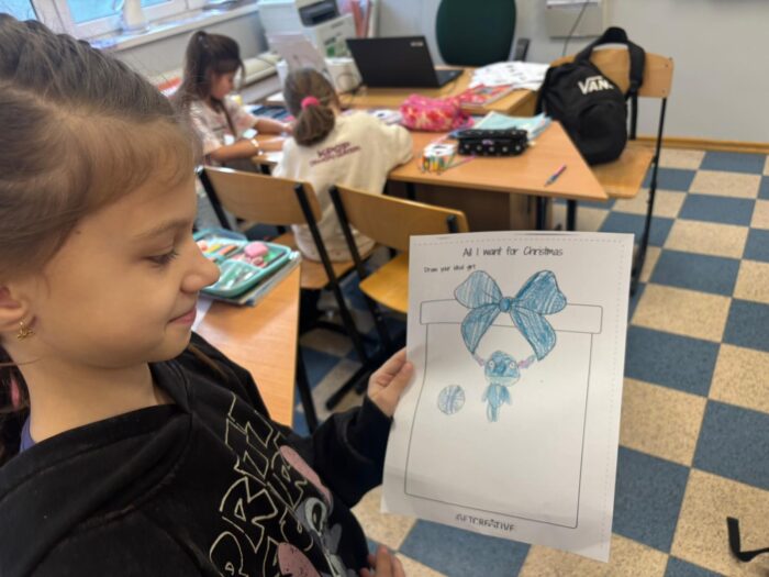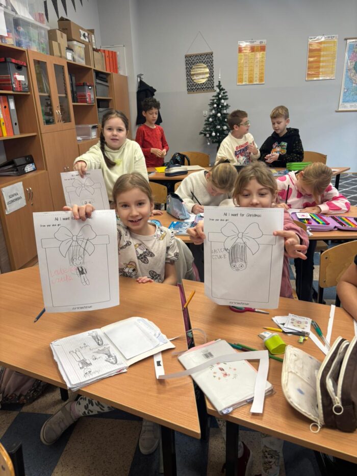 Przed świętami odbyły się lekcje świąteczne w klasach językowych 3b, 2b oraz 2c z wykorzystaniem piosenki “I’m A Little Snowman” – powtarzając części ciała oraz do piosenki “What Do You Want For Christmas”, powtarzając nazwy zabawek .