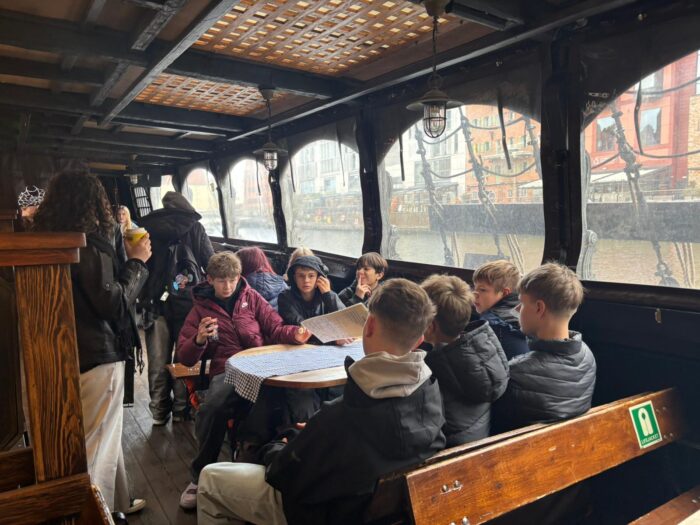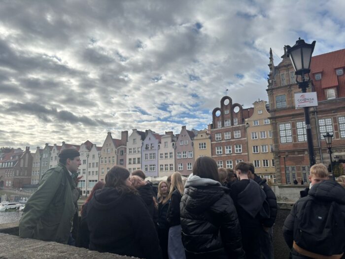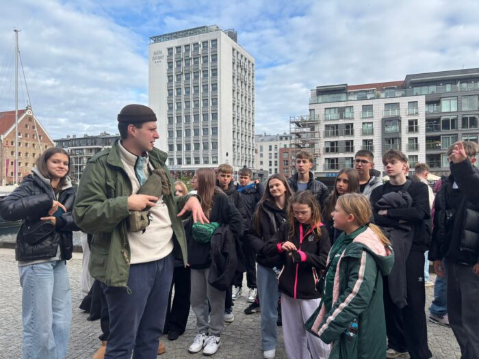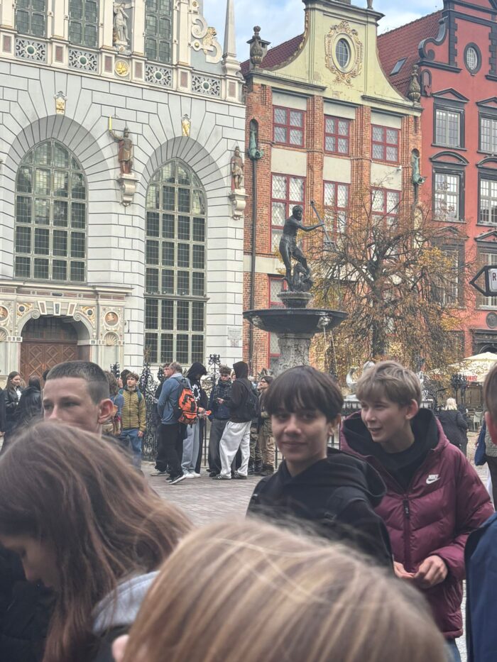 Podczas pobytu w Gdańsku uczniowie zwiedzili centrum miasta, podążając Drogą Królewską. Zobaczyli m.in. ulicę Długą, Długi Targ, Fontannę Neptuna, Ratusz Głównego Miasta, Bazylikę Mariacką oraz Żuraw nad Motławą. Odbyło się także przejście obok Pomnika Poległych Stoczniowców oraz wizyta przy Europejskim Centrum Solidarności. Uczniowie mieli możliwość podziwiania miasta z tarasu widokowego.