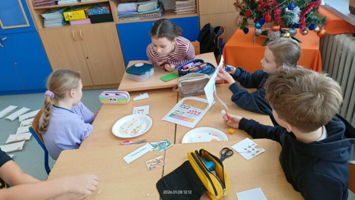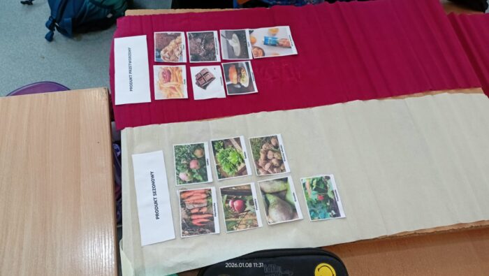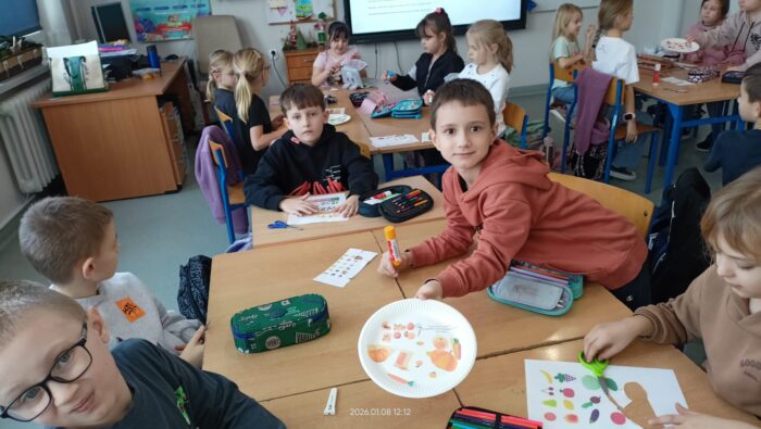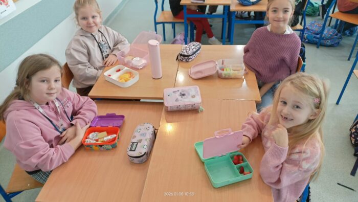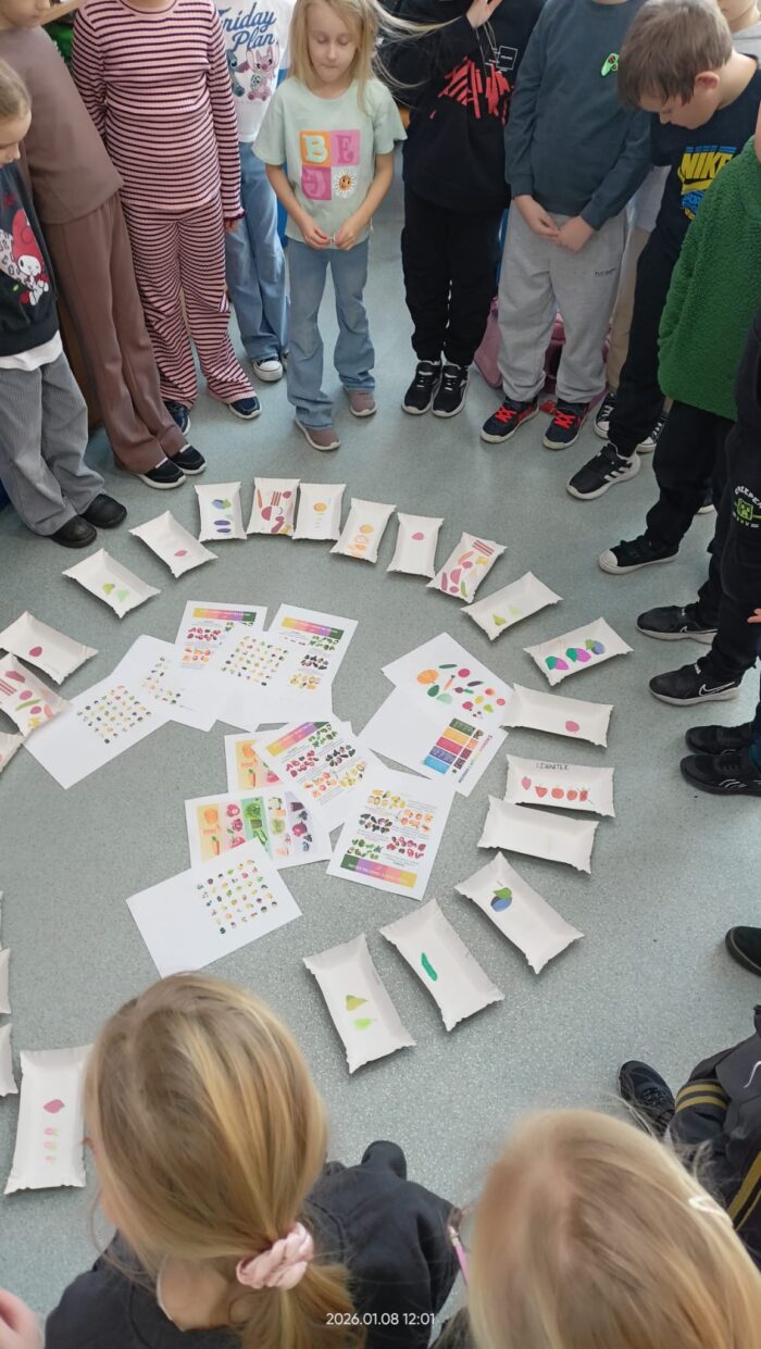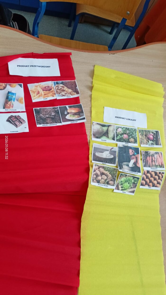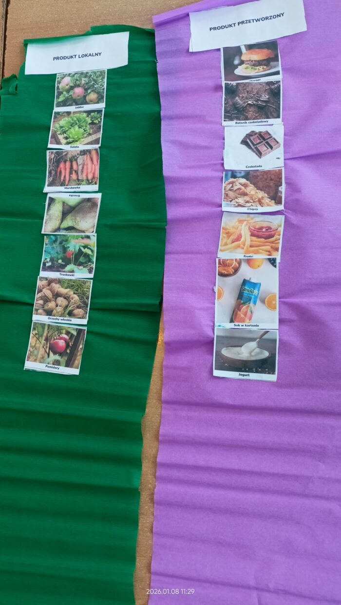 Podczas zajęć omawialiśmy swoje ulubione drugie śniadanie, dowiedzieliśmy się co oznacza produkt nieprzetworzony, sezonowy i lokalny. Nauczyliśmy się które produkty są zdrowe i dlaczego. Była super zabawa ” Skocz po supermoc” i odkryliśmy zasady zrównoważonego jedzenia.