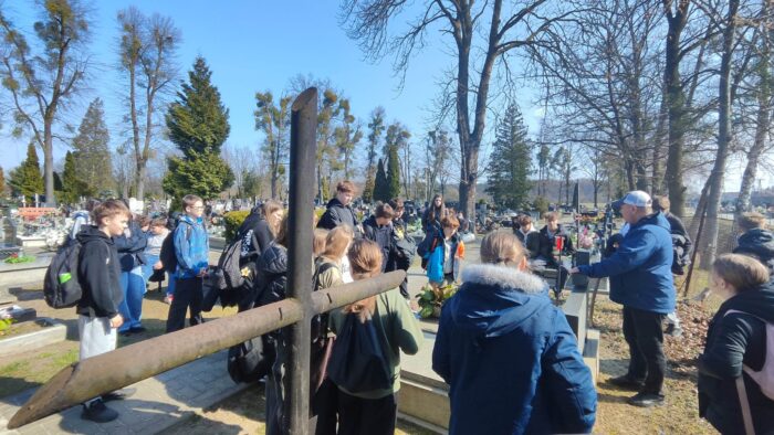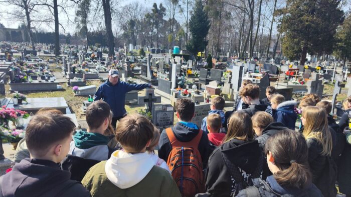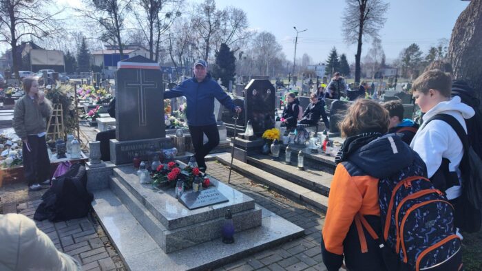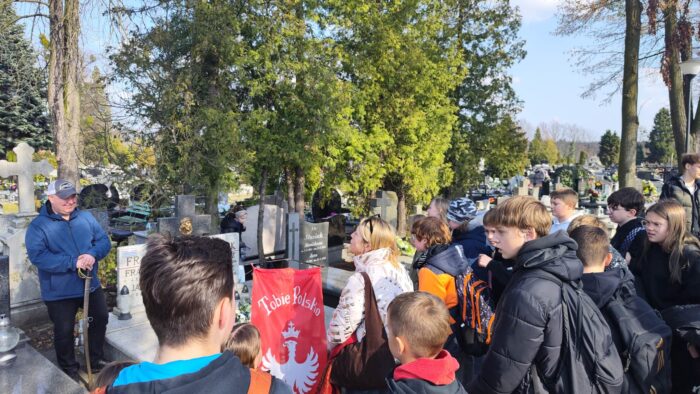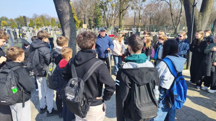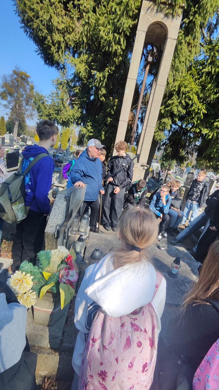 19 kwietnia klasy 5c i 8a wraz z wychowawczyniami uczestniczyły w lekcji „żywej historii”, która odbyła się na naszym kluczborskim cmentarzu, a poprowadził ją zaproszony gość, pan Leszek Krzyżanowski, pasjonat i miłośnik historii.