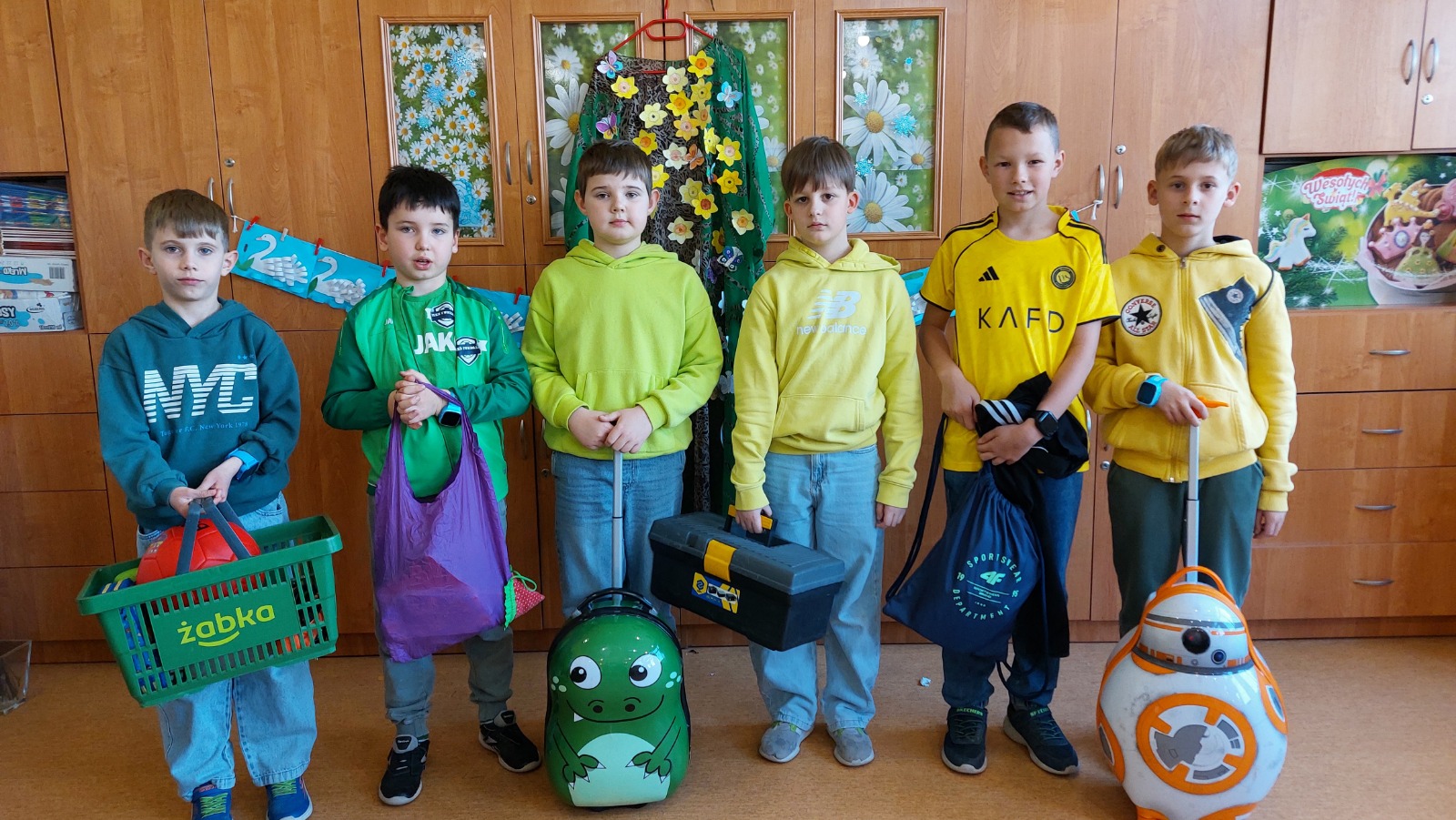 Dzień bez plecaka zagościł w naszej szkole 23 marca. Nasi uczniowie wykazali się ogromną kreatywnością. Udowodnili, że wyobraźnia nie ma granic. Zeszyty i podręczniki spakowali do koszy na pranie, wózków dziecięcych, walizek, poszewek na poduszki, a nawet powiesili na suszarce na pranie. Liczyła się pomysłowość i spryt, a tego naszym uczniom nie brakuje.