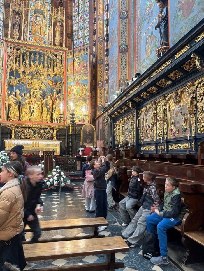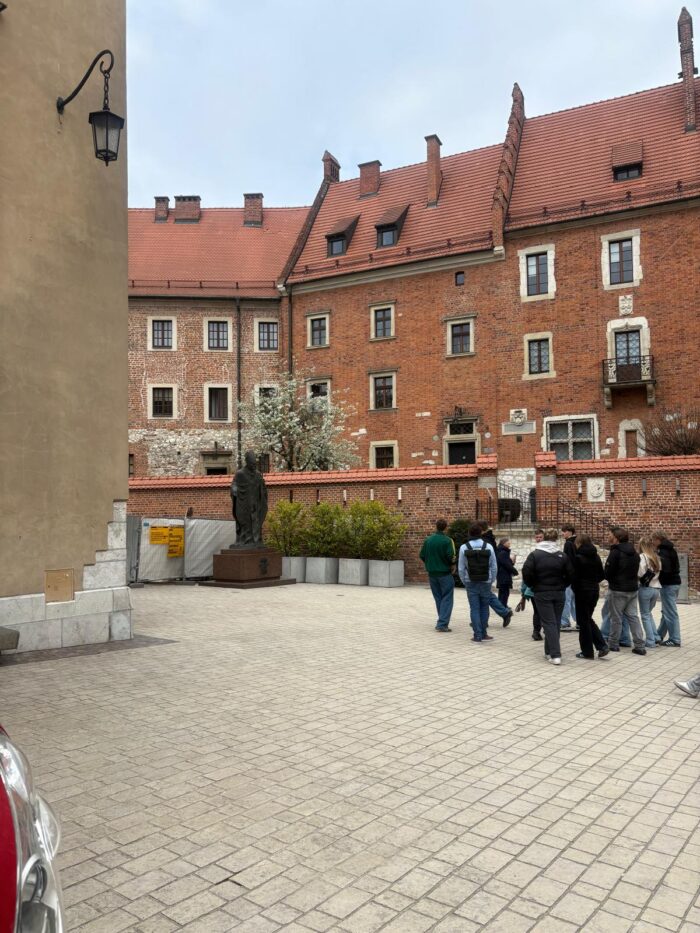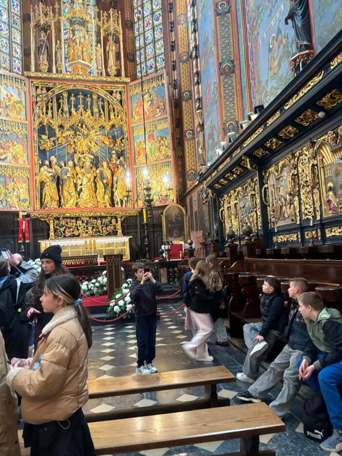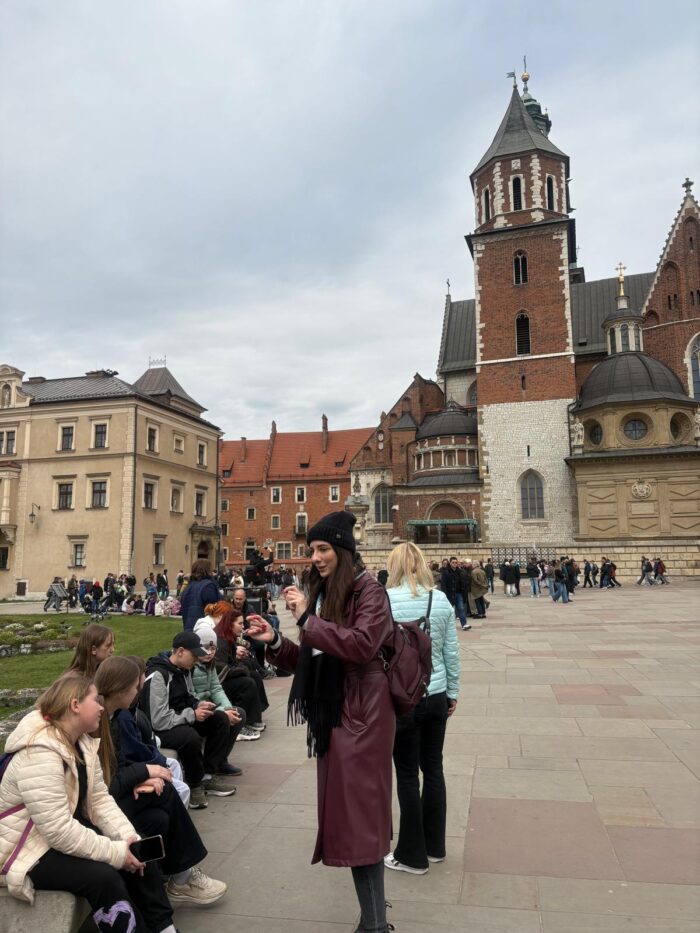 Naszą wycieczkę rozpoczęliśmy od zwiedzania Wawelu,gdzie mogliśmy zobaczyć dziedziniec królewski oraz poznać historię dawnych królów Polski. Następnie udaliśmy się na Stare Miasto, spacerując jego urokliwymi uliczkami i podziwiając zabytkową architekturę.