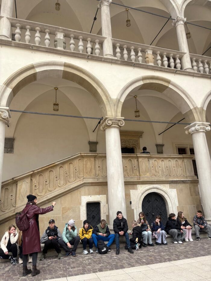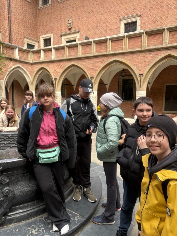 Podczas wycieczki odwiedziliśmy także Uniwersytet Jagielloński, jeden z najstarszych uniwersytetów w Europie. Mieliśmy możliwość zobaczyć jego zabytkowy dziedziniec oraz dowiedzieć się ciekawostek o studentach i profesorach sprzed wieków.