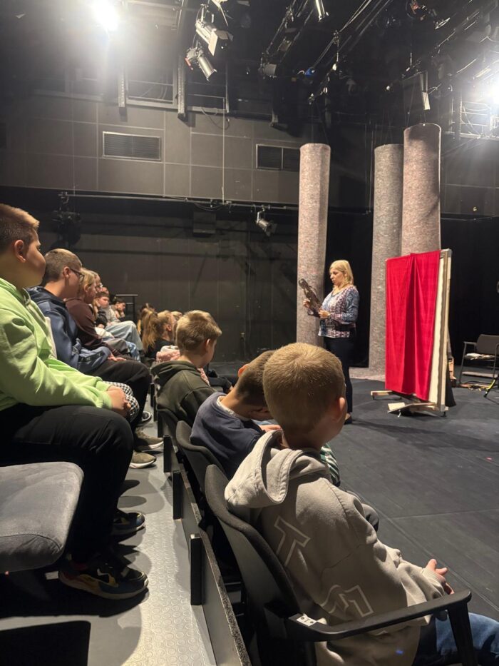 Następnie grupa udała się do Teatru Lalek, gdzie obejrzała spektakl pt. „Jaszczurunia”. Przedstawienie wzbudziło duże zainteresowanie i dostarczyło wielu emocji młodym widzom.