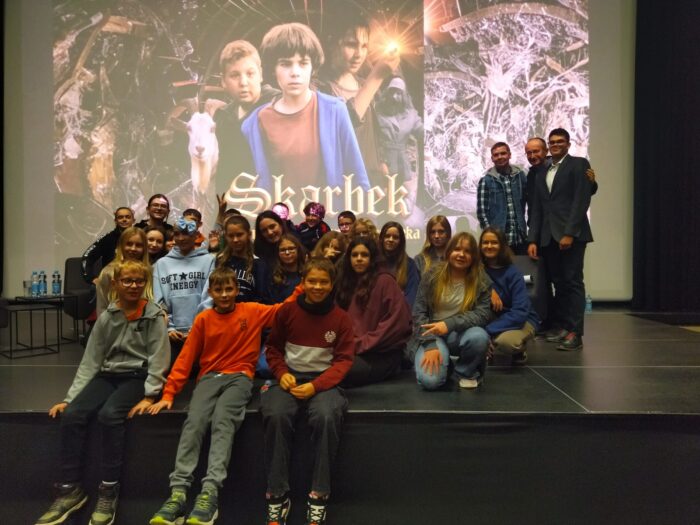 Dnia 28.10.2025r. klasa 6 b wybrała się do kina na film pt. „Skarbek i tajemnica magicznego sreberka“.