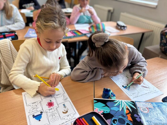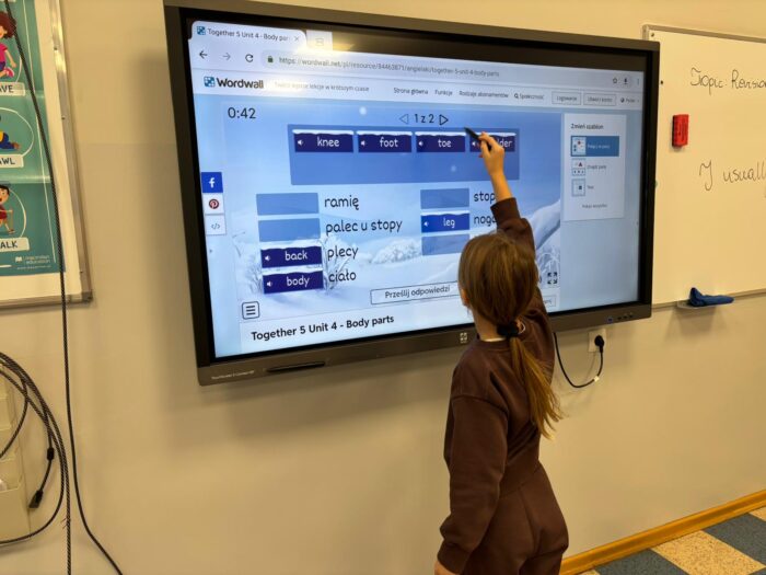 „Parts of the Body” to temat lekcji języka angielskiego realizowanych w klasach językowych 2b oraz 2c. Zajęcia zostały przeprowadzone przez Patrycję Pietrzykowską oraz Mariolę Sobecką-Drozdę. Podczas lekcji uczniowie poznawali i utrwalali nazwy części ciała w języku angielskim z wykorzystaniem gier językowych na tablicy interaktywnej, zabaw ruchowych oraz zajęć plastycznych prowadzonych w języku angielskim. Zajęcia miały aktywny i angażujący charakter, sprzyjały nauce poprzez zabawę oraz rozwijaniu kompetencji językowych uczniów.